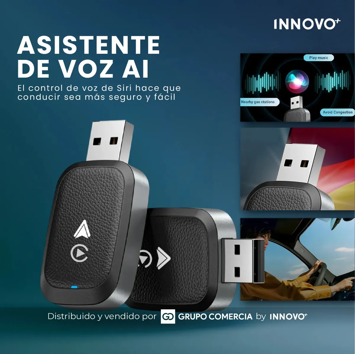 ¿Cansado de pelear con cables que se desconectan o estorban mientras manejas? Con el nuevo Adaptador Inalámbrico INNOVO+, transformas tu sistema de infoentretenimiento tradicional en una experiencia premium sin ataduras.