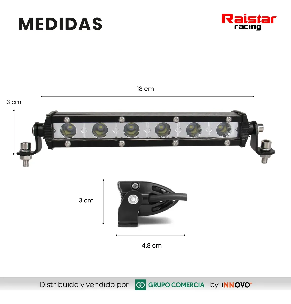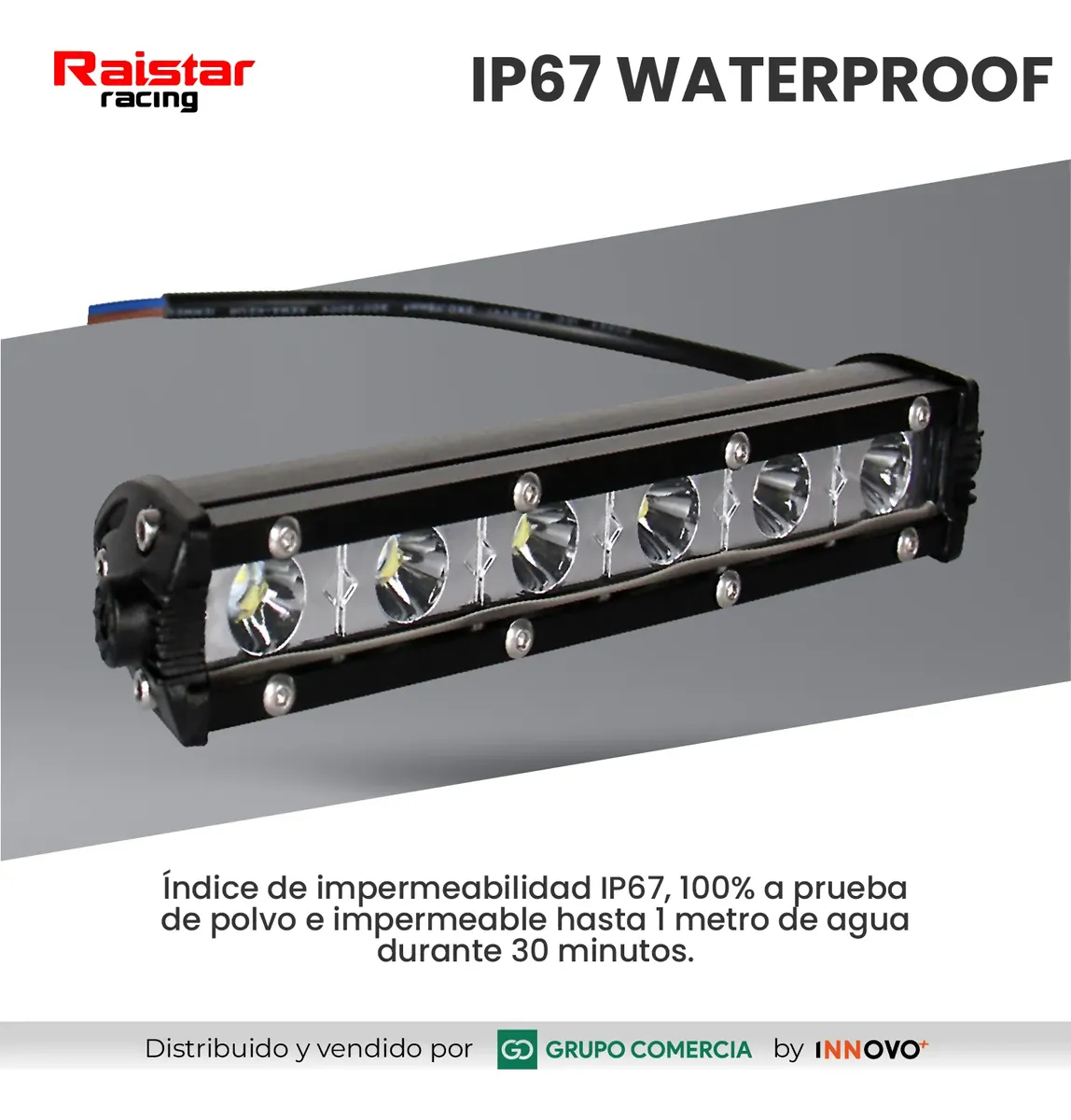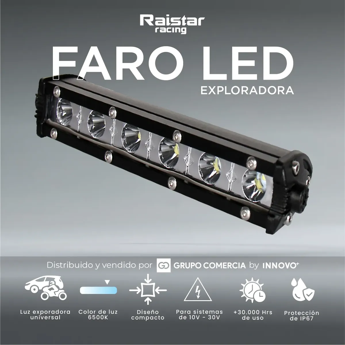 Presentamos la Barra LED Exploradora Raistar Racing, diseñada para quienes no se detienen ante nada. Con una potencia superior a los 4000 lúmenes y una temperatura de color de 6500K (blanco puro), esta barra transforma la noche en día, permitiéndote reaccionar a tiempo ante cualquier obstáculo en la carretera o trocha.