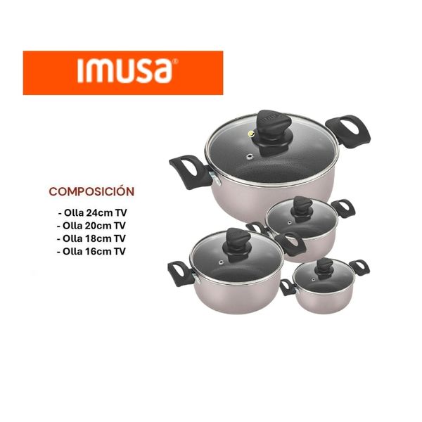 Prepara tus recetas favoritas con la Batería de Cocina Imusa de 8 piezas, diseñada para brindarte durabilidad, practicidad y un antiadherente de alta calidad que evita que los alimentos se peguen. Ideal para hogares modernos que buscan confianza y eficiencia en cada preparación.