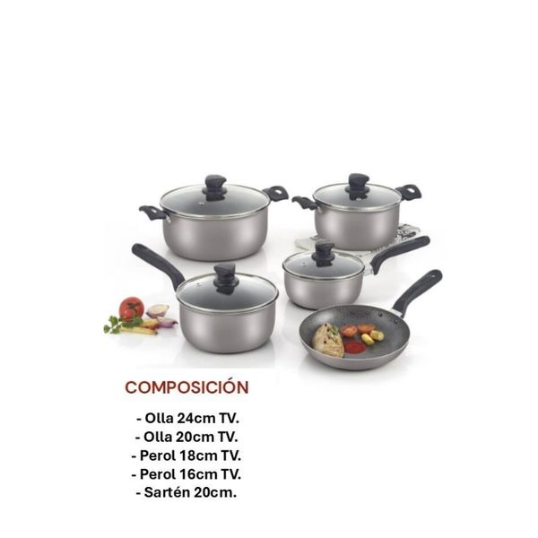 Lleva tu cocina al siguiente nivel con la Batería de Cocina Imusa de 9 piezas, pensada para familias que buscan practicidad, durabilidad y elegancia. Sus ollas, peroles y sartén cuentan con recubrimiento antiadherente de alta resistencia que evita que los alimentos se peguen y permite cocinar con menos aceite.