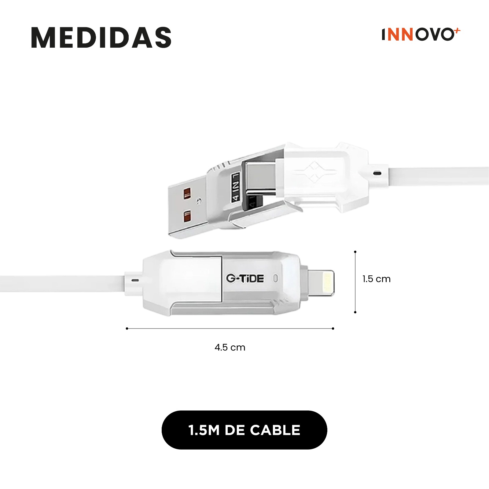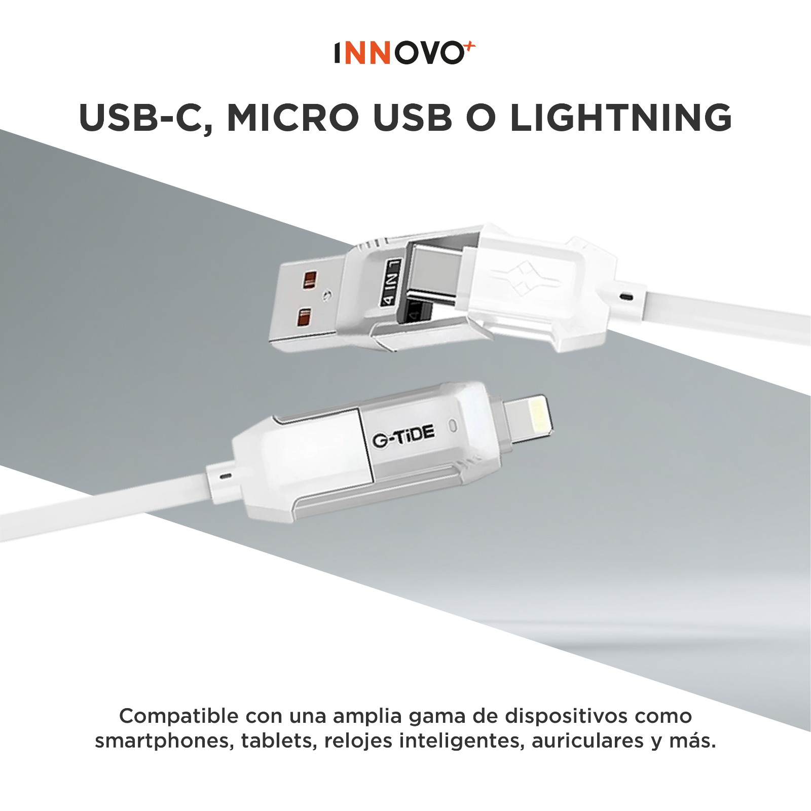 Cable De Carga Universal 4 En 1 G-tide 65w Carga Rápida Usb-c Micro 1.5m Blanco