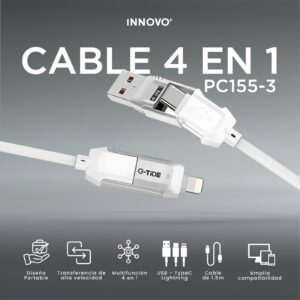 ¿Cansado de cargar con mil cables diferentes? Simplifica tu día a día con el cable G-Tide PC155-3, la solución definitiva de carga y transferencia de datos. Diseñado para ser el único cable que necesites en tu mochila, oficina o auto.