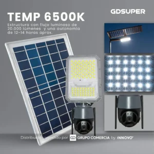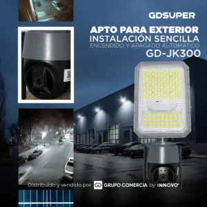 Llegó la evolución en iluminación y vigilancia exterior. El GDSUPER GD-JK300 no es un simple reflector; es un sistema de seguridad inteligente integral que funciona 100% con energía solar. Olvídate de cables complicados, contratos mensuales de seguridad y gastos eléctricos.