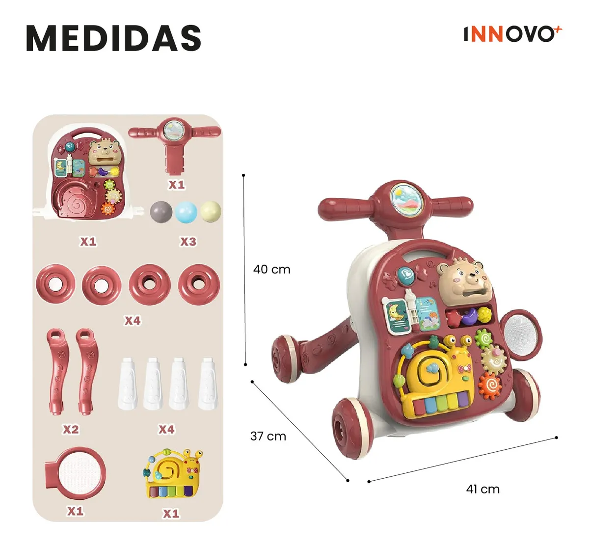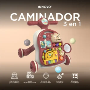 El Caminador 3 en 1 Innovo+ es el aliado perfecto para acompañar a tu bebé en sus primeras etapas de desarrollo. No es solo un caminador… ¡es un centro completo de aprendizaje, juego y movimiento!