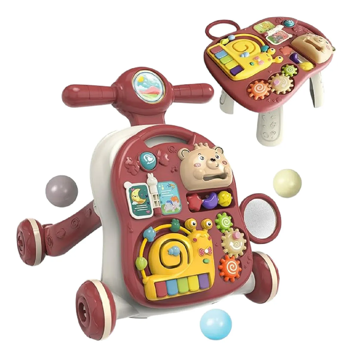 Incluye engranajes, libro giratorio, pelotas, bloques, sonidos, luces y piezas móviles que mantienen al bebé entretenido mientras desarrolla coordinación y curiosidad.