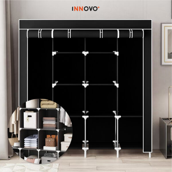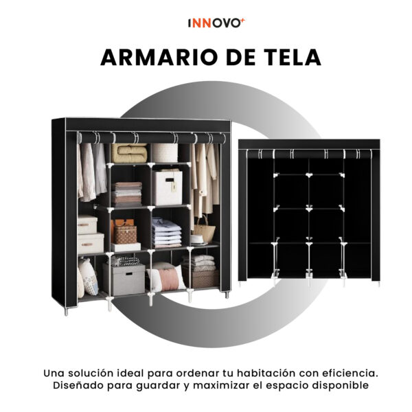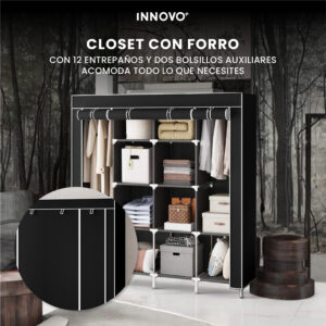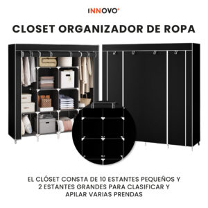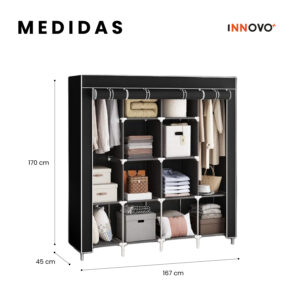 Clóset Organizador de Ropa Plegable 4 Puertas 12 Espacios Tela Negro Innovo+