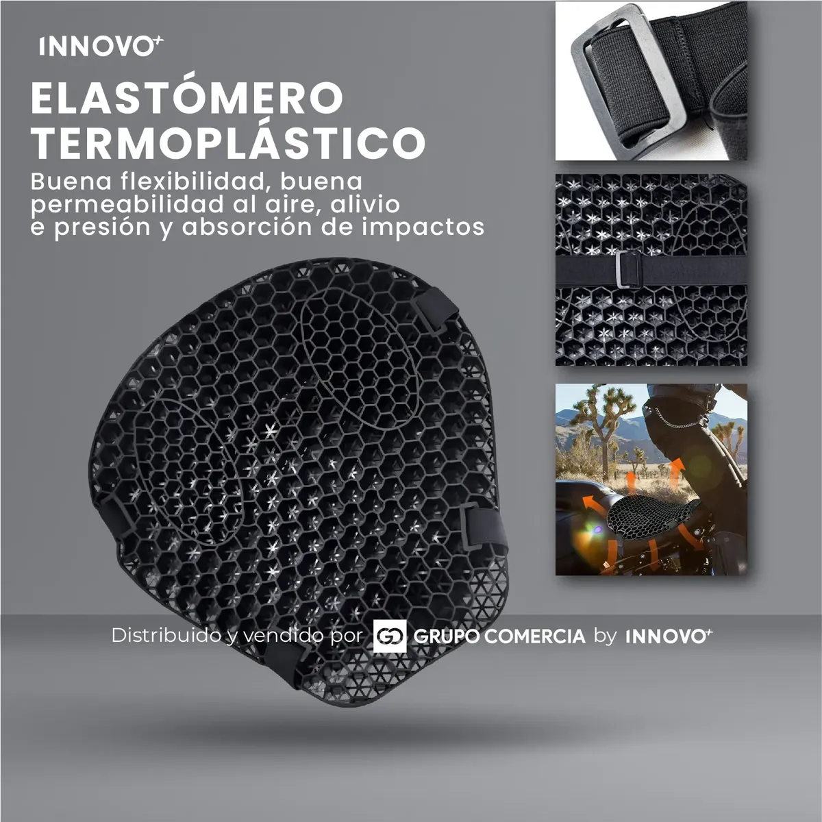 Blindaje Antivibración: Fabricado en Elastómero Termoplástico (TPE) de alta densidad, este cojín actúa como una suspensión secundaria que absorbe los impactos de los baches y reduce drásticamente la vibración del motor hacia tu columna.