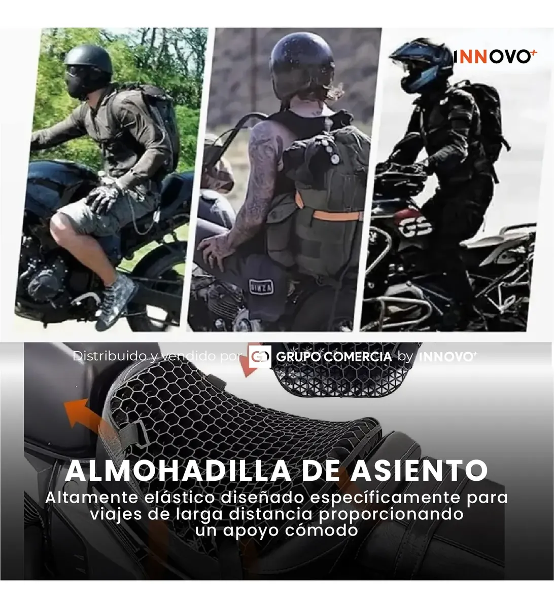 No dejes que el cansancio o el calor arruinen tu pasión por rodar. Presentamos el Cojín para Moto con Tecnología de Celdas de Colmena, el accesorio definitivo diseñado para quienes viven sobre dos ruedas y exigen el máximo confort.