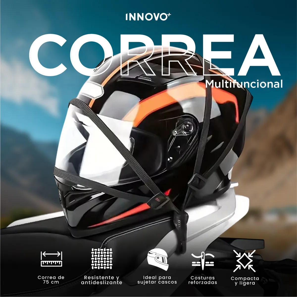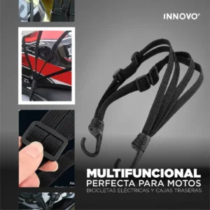La correa multifuncional antideslizante de 75 cm está diseñada para asegurar cascos, equipaje y accesorios en moto o bicicleta con total firmeza. Su sistema elástico resistente, ganchos reforzados y fibra antideslizante garantizan sujeción estable incluso en trayectos irregulares. Ideal para motociclistas, domiciliarios y ciclistas que buscan seguridad, practicidad y máxima durabilidad.
