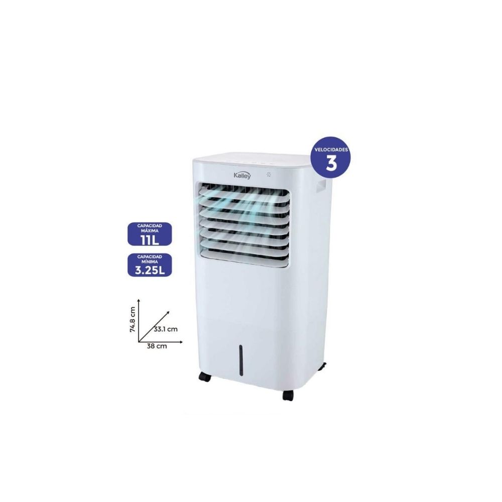 Mantén tu hogar u oficina siempre fresca con el Enfriador de Aire Kalley 11L, diseñado para ofrecerte un ambiente cómodo y saludable en todo momento. Gracias a su tanque de gran capacidad y sus 3 velocidades ajustables, disfrutarás de un flujo de aire potente y constante, ideal para los días más calurosos.