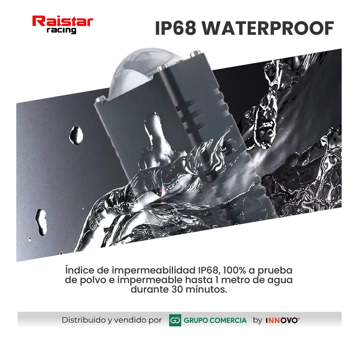 Blindaje Total (IP68): ¿Rutas de lodo? ¿Tormentas inesperadas? Su certificación IP68 garantiza que seguirán brillando incluso sumergidas a 1 metro bajo el agua. Polvo y agua simplemente no son rivales.
