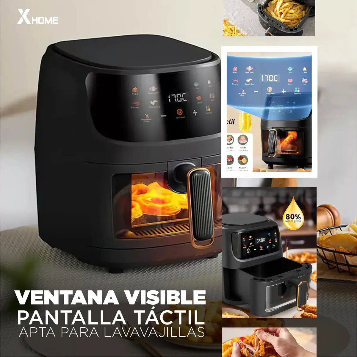 El Efecto ‘Gourmet View’ a tu Alcance: Olvida las adivinanzas. Nuestra innovadora ventana de visualización panorámica te permite presenciar la magia. Observa cómo tus platos se doran a la perfección sin necesidad de abrir la cesta y perder calor. Es como tener un chef privado supervisando cada detalle.