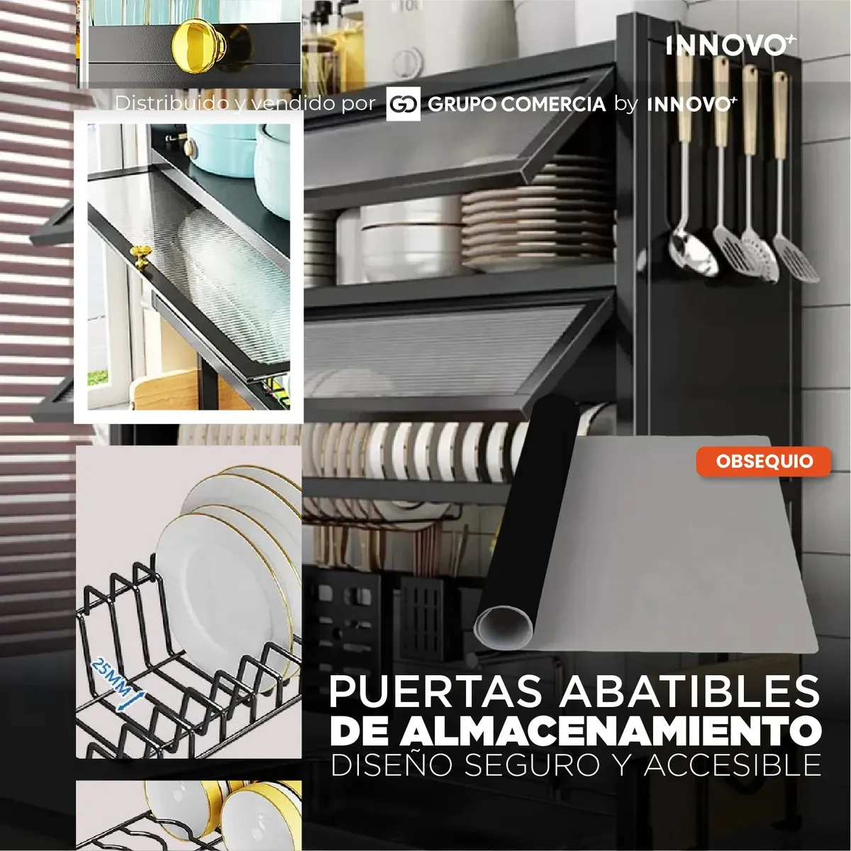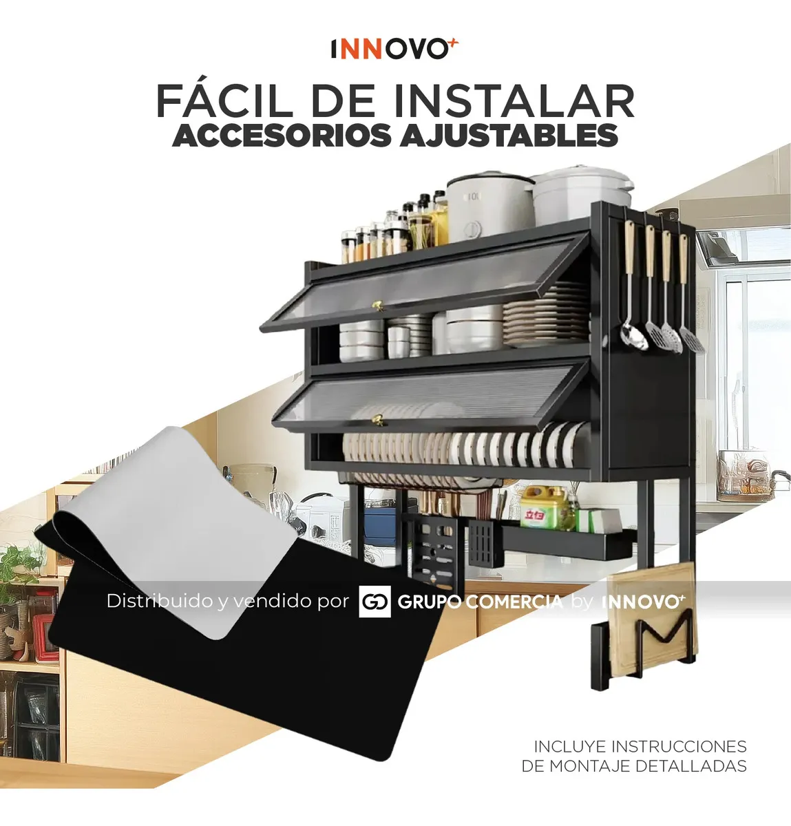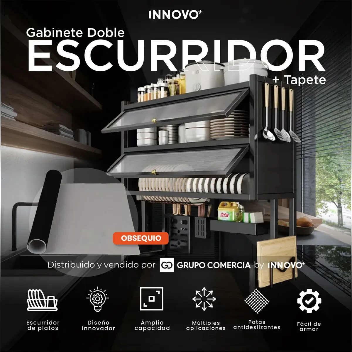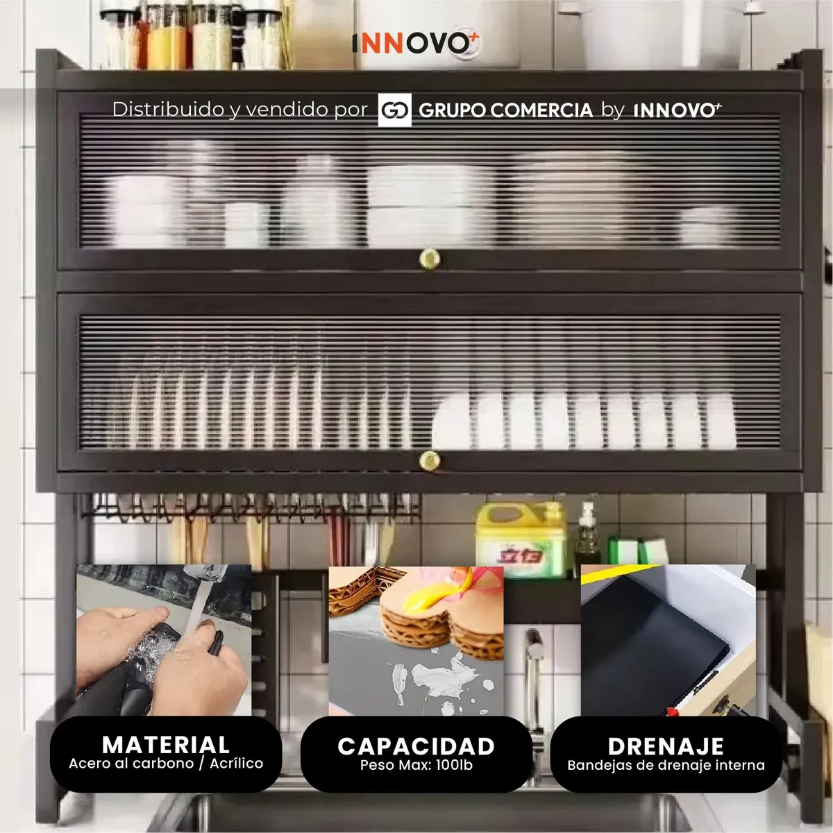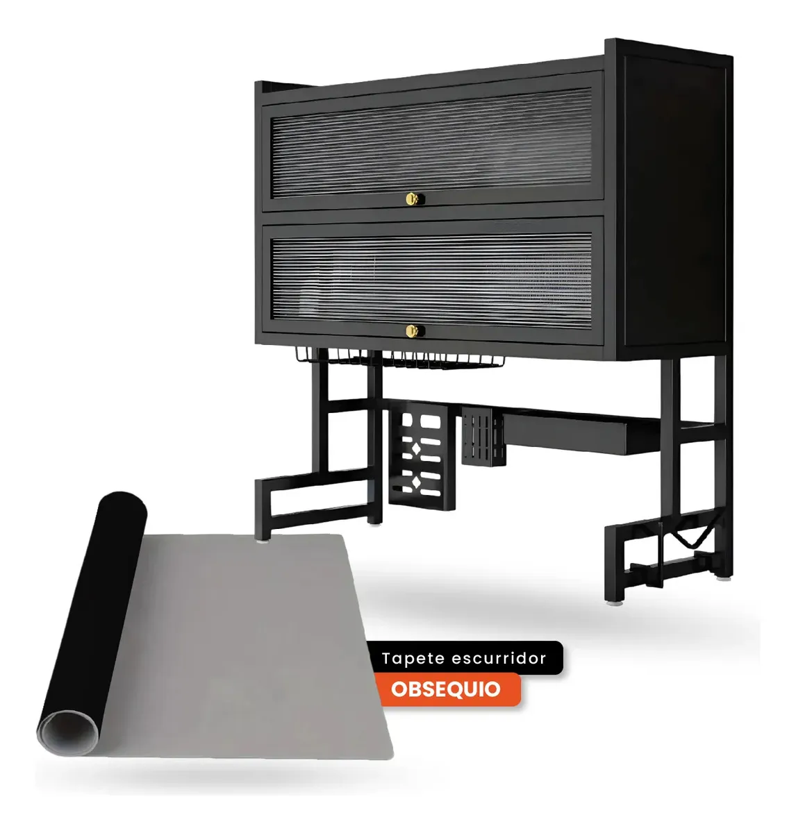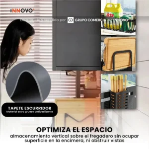 Gabinete Escurridor Platero Premium Organizador De Cocina Tapete Absorbente Negro Negro