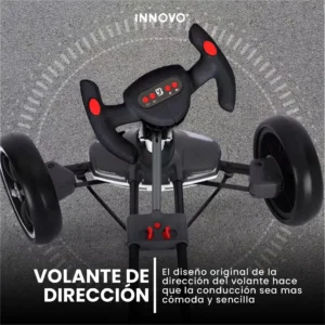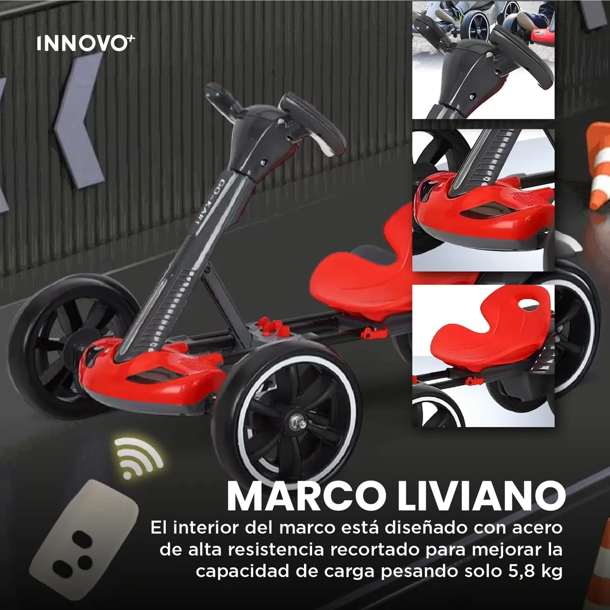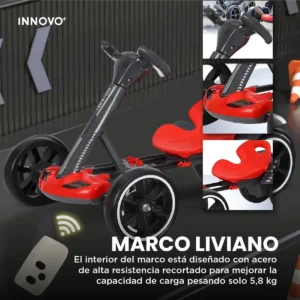 El Go Kart Innovo+ incorpora batería recargable, estructura reforzada en acero liviano y un mecanismo de seguridad para un manejo tranquilo y confiable. Perfecto como regalo para cumpleaños, Navidad o cualquier ocasión especial.