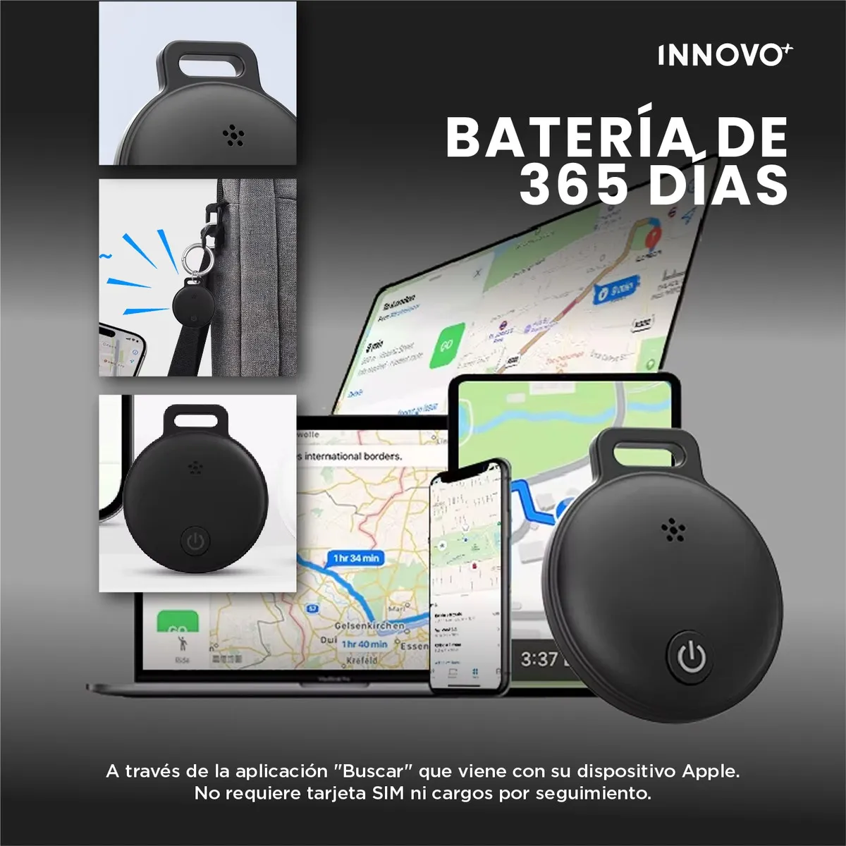 Con el Rastreador GPS Innovo+ Certificado por Apple, olvídate del estrés. Este dispositivo compacto y ultraligero se sincroniza directamente con la red Apple Find My, ofreciendo ubicación en tiempo real, alertas de sonido, historial y búsqueda guiada con precisión.