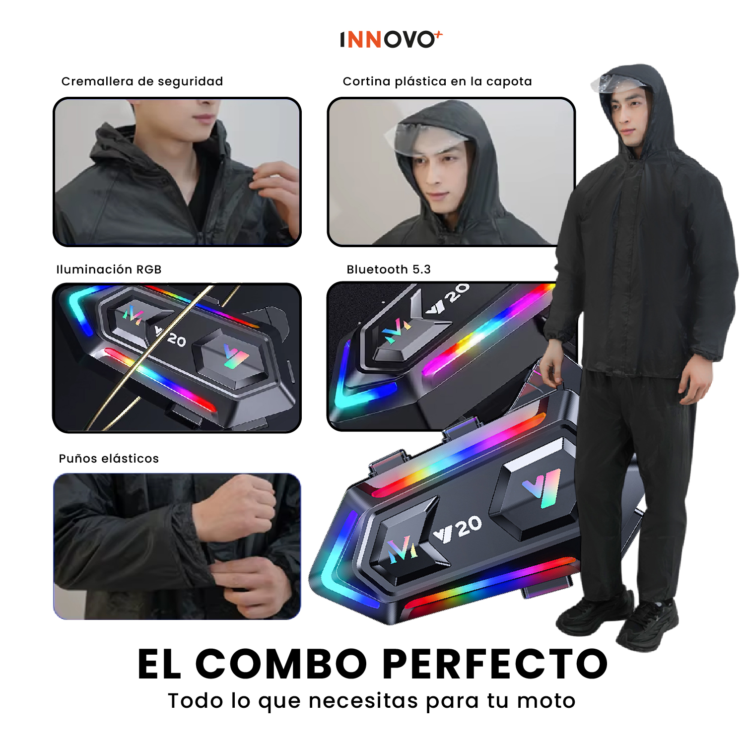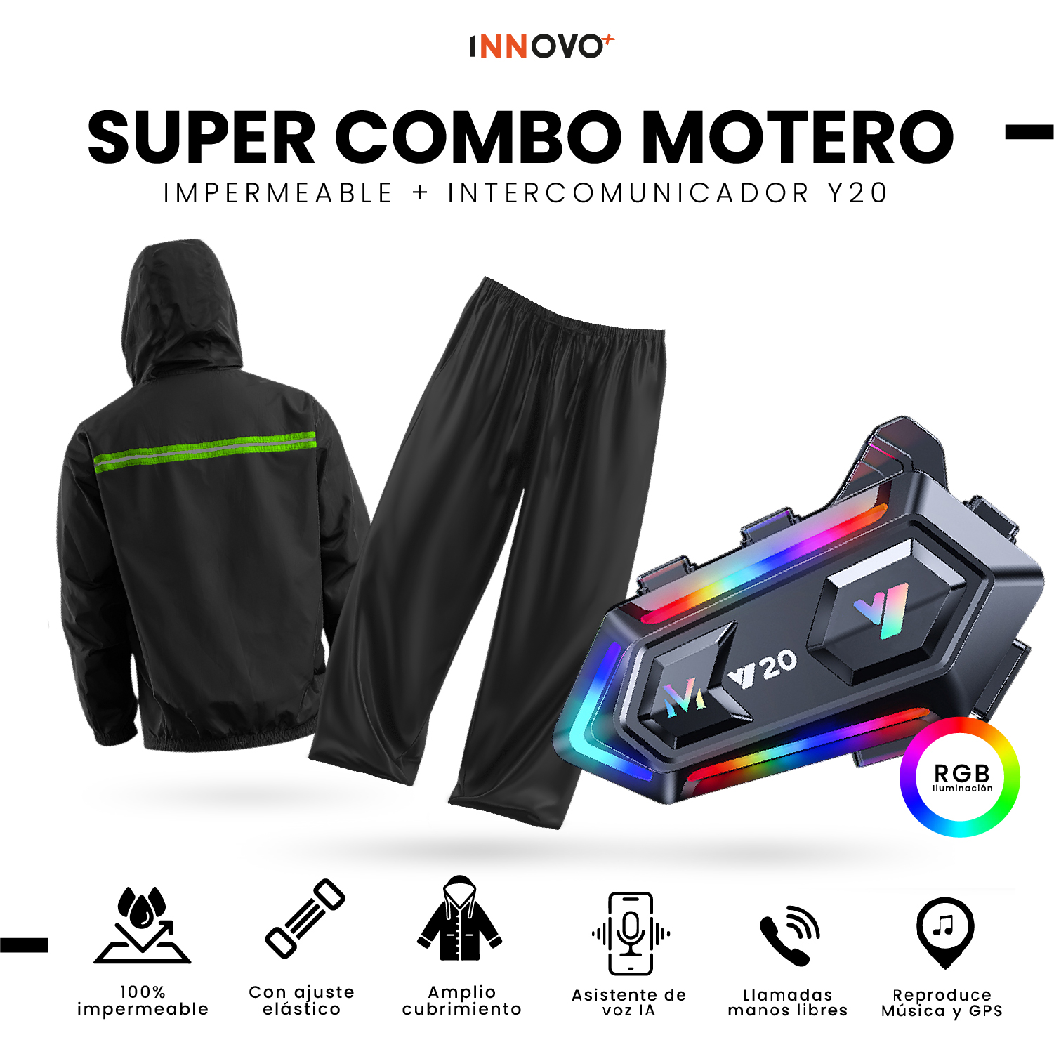 Impermeable Motero Talla L Con Intercomunicador Bluetooth Y20 Manos Libres