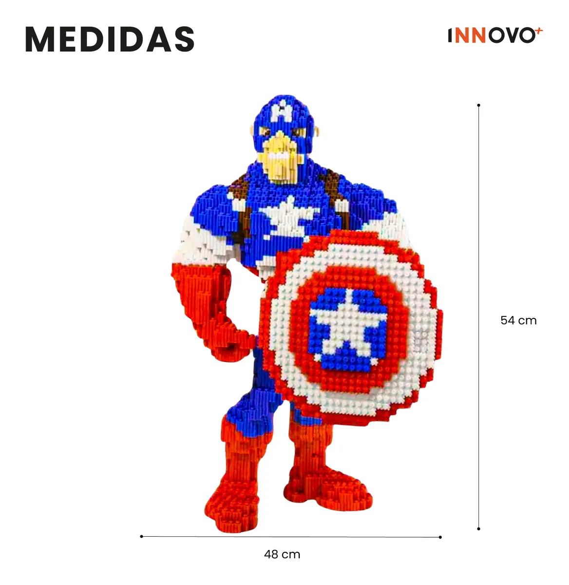 Este Magic Block del Capitán América es una figura 3D de gran tamaño (54 cm) diseñada con 8.100 mini bloques de 7 mm, lo que garantiza un nivel de detalle impresionante que encanta tanto a niños como a adultos coleccionistas.