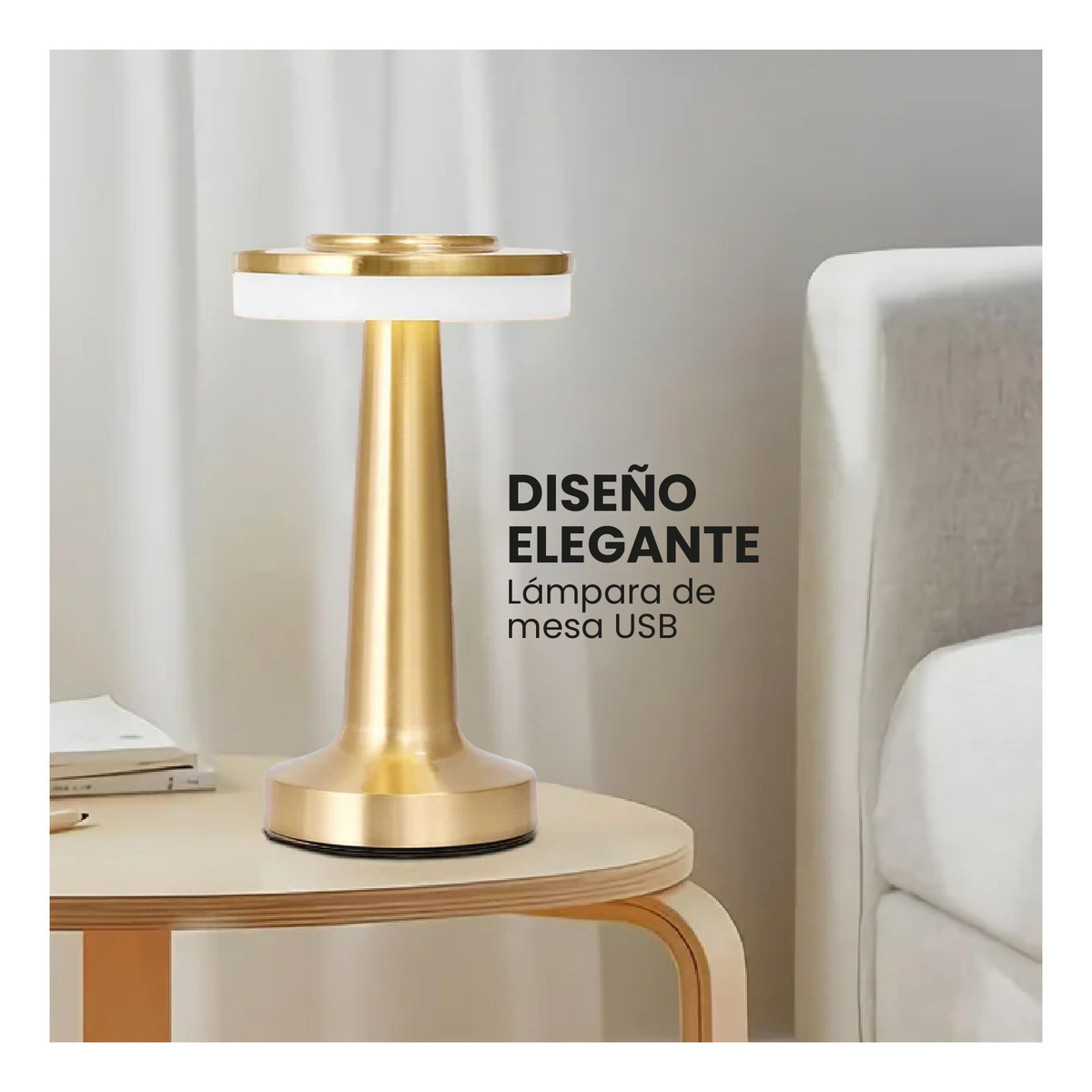 Ilumina tus espacios con estilo y funcionalidad con la lámpara de mesa LED USB con diseño elegante en aluminio. Su acabado moderno tipo oro satinado la convierte en el accesorio perfecto para decorar salas, habitaciones, escritorios y espacios de lectura.
