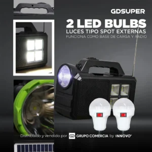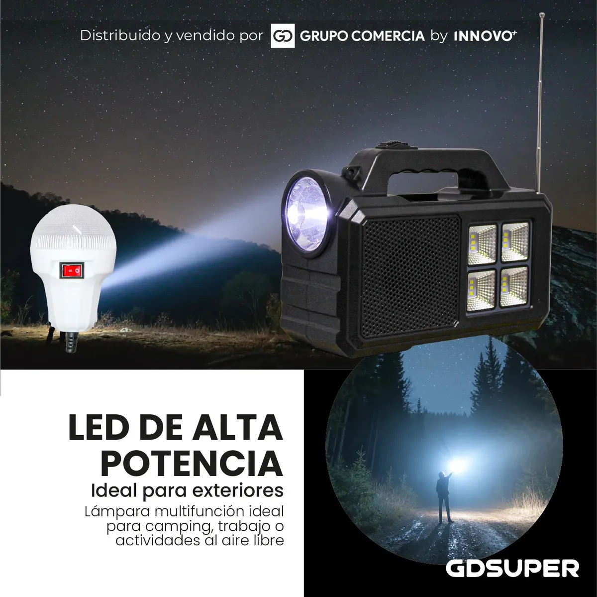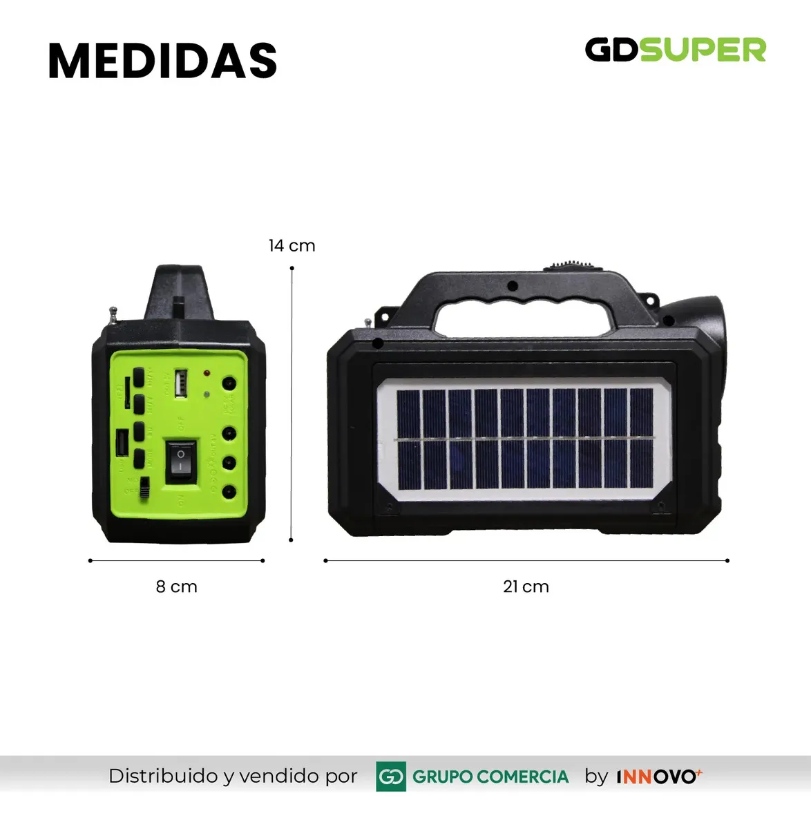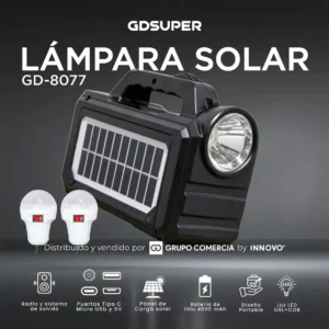 ¿Cansado de quedarte a oscuras o sin batería cuando más lo necesitas? Presentamos la Estación Solar Multifunción GDSUPER GD-8077, el aliado definitivo para los amantes del camping, las reparaciones nocturnas y, sobre todo, para estar siempre preparado ante cualquier corte de luz en casa.