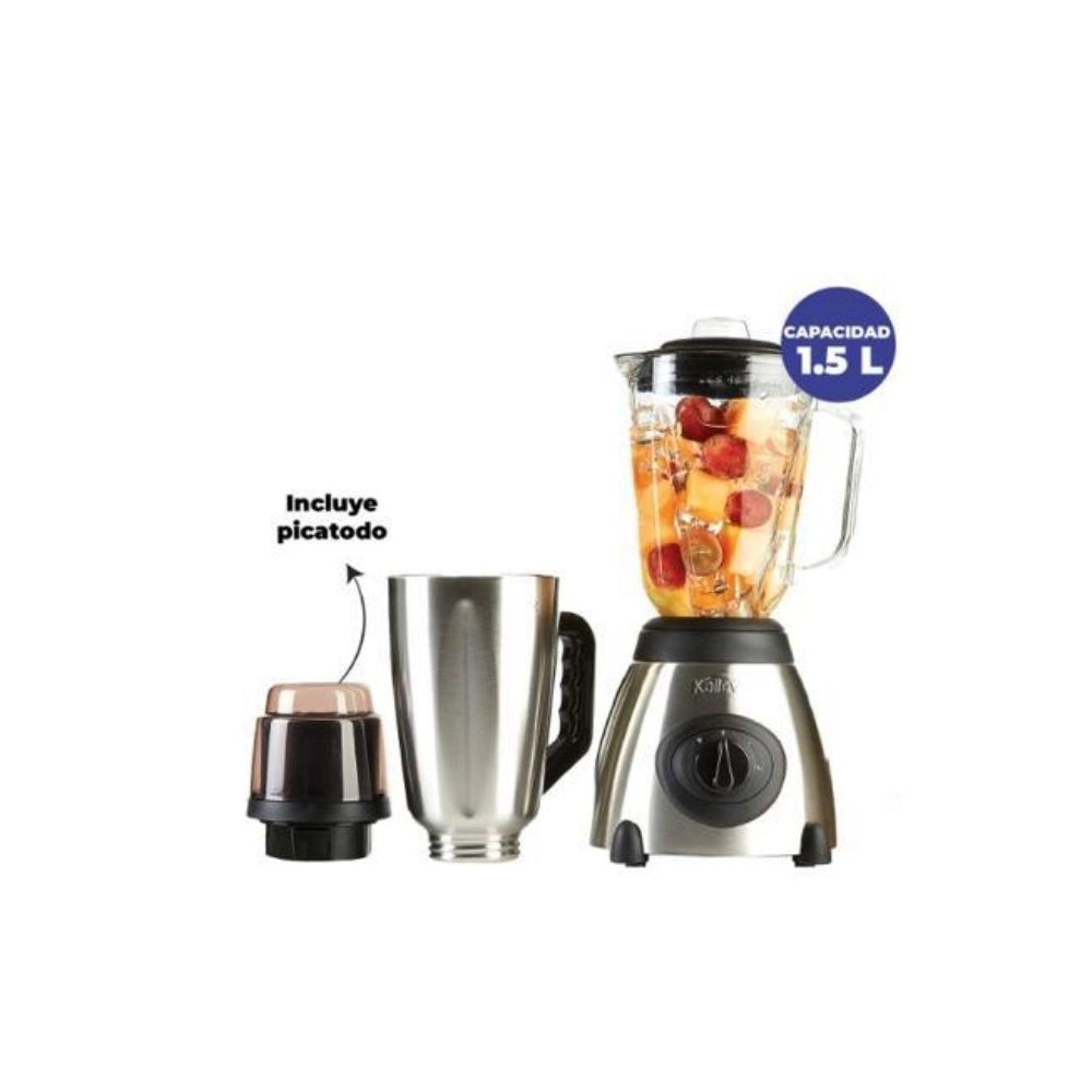 Prepara jugos, batidos, sopas y salsas de manera rápida y eficiente con la Licuadora Kalley 1.5L, diseñada para brindarte practicidad, potencia y durabilidad. Su vaso de vidrio resistente y vaso adicional en acero inoxidable se adaptan a todas tus preparaciones, mientras que el accesorio picatodo facilita triturar granos, especias y alimentos secos en segundos.