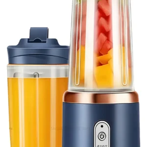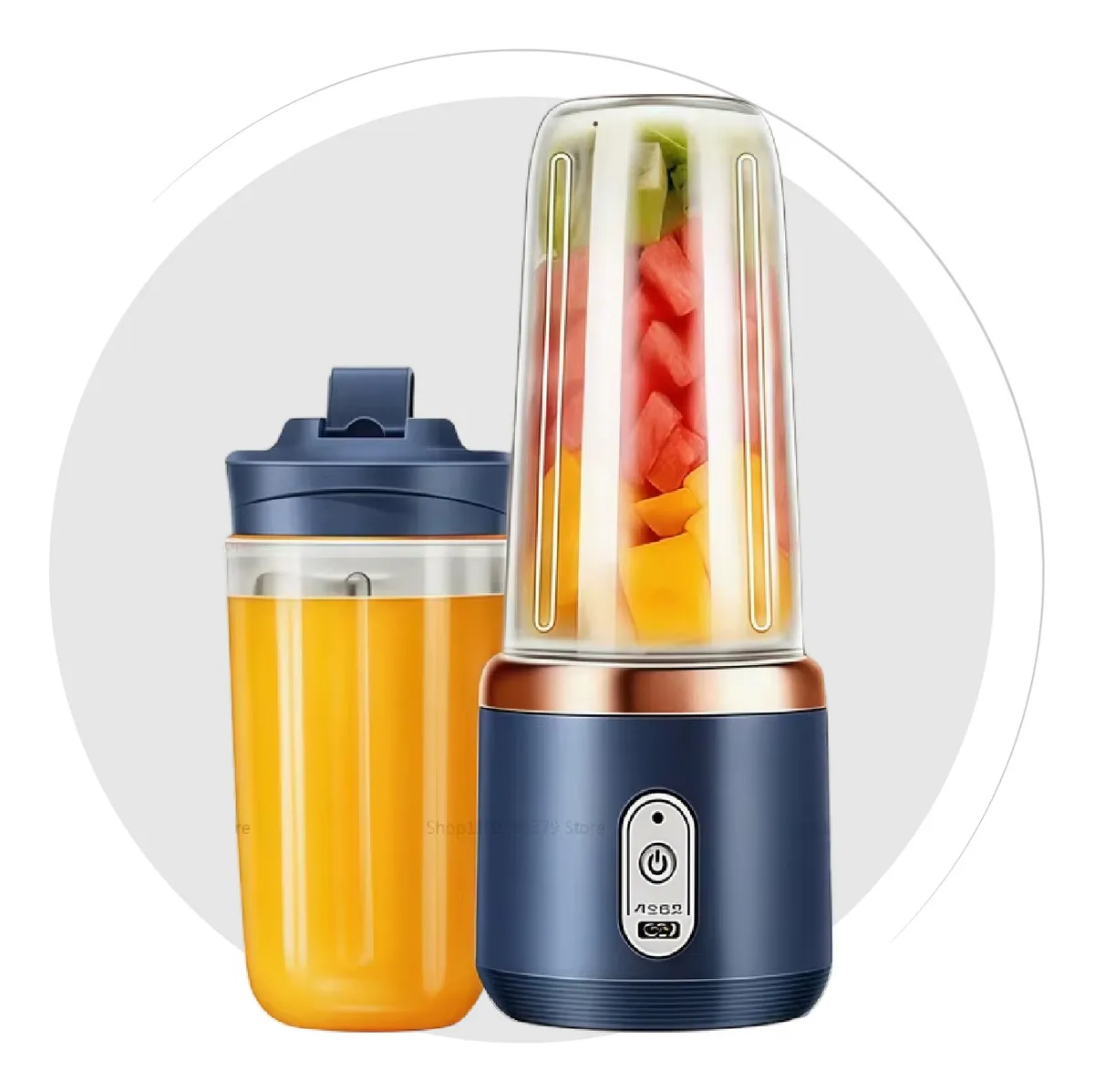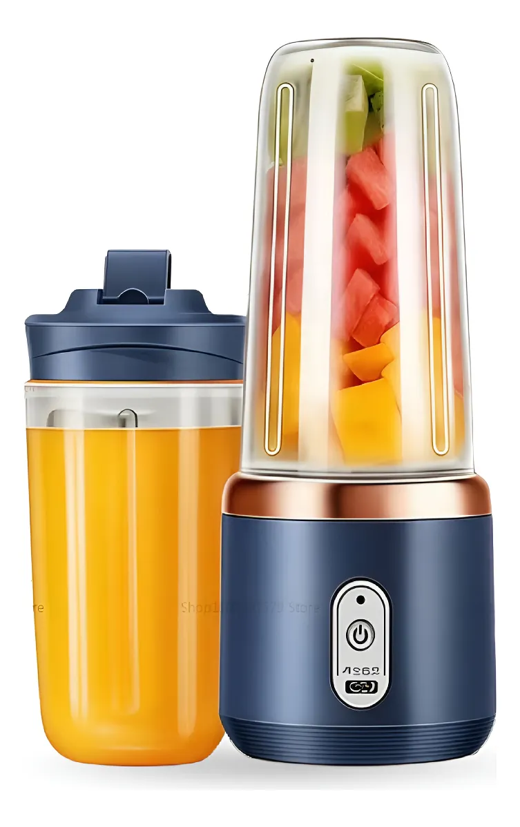 Esta licuadora portátil recargable cuenta con 6 cuchillas de acero inoxidable, motor potente y diseño compacto para llevar al gimnasio, oficina, viajes o uso diario en casa.