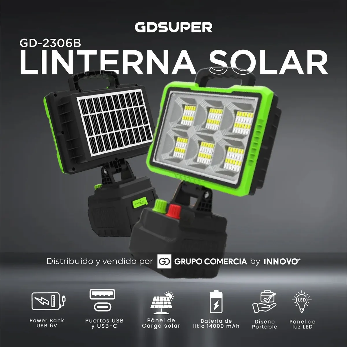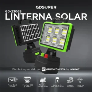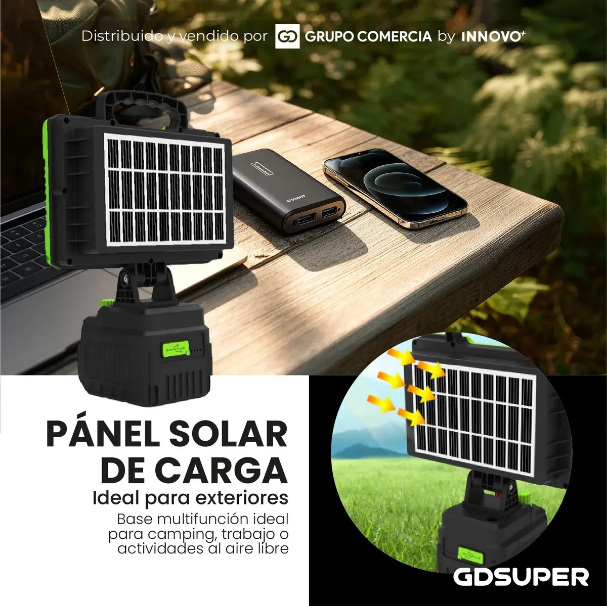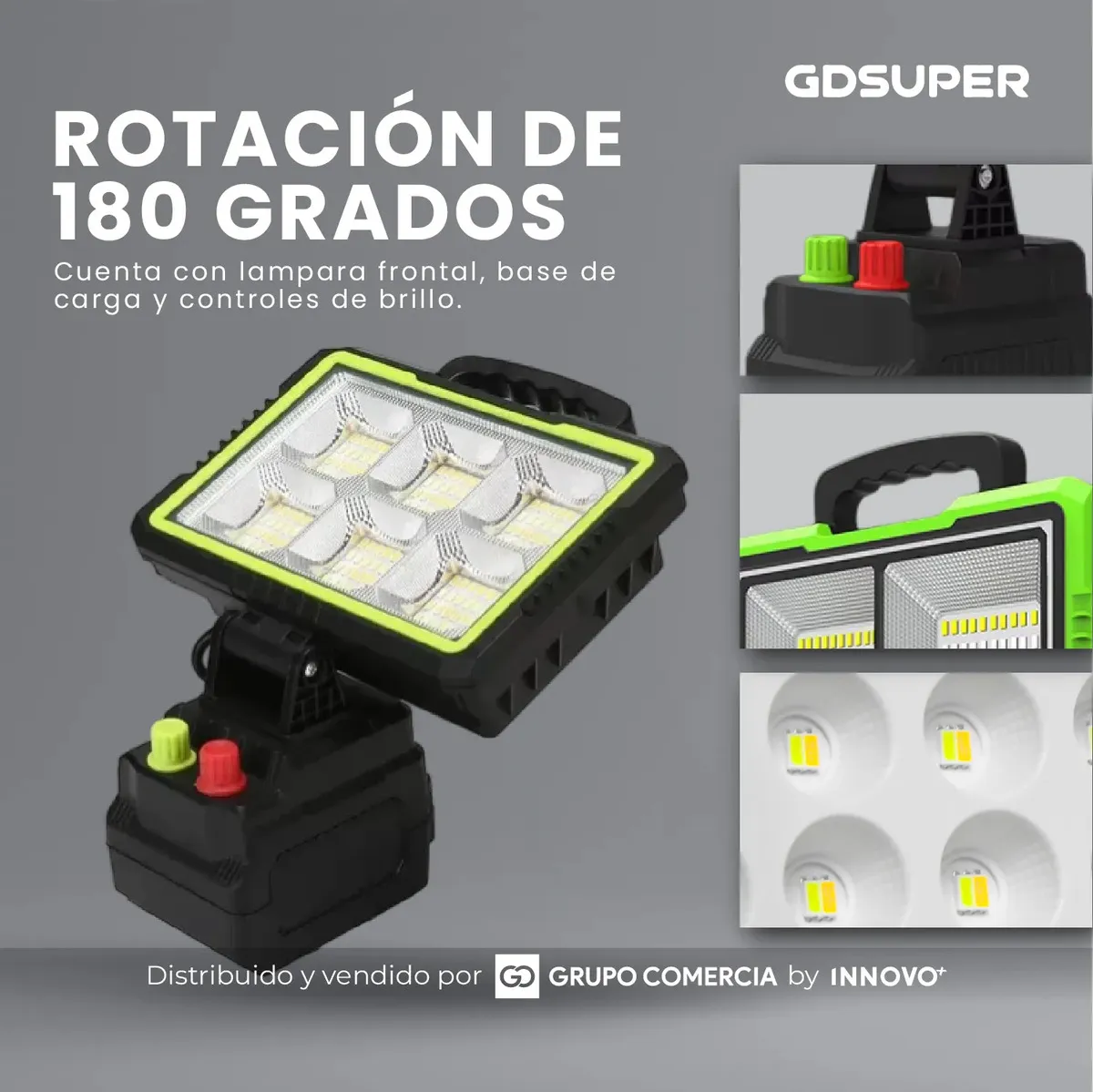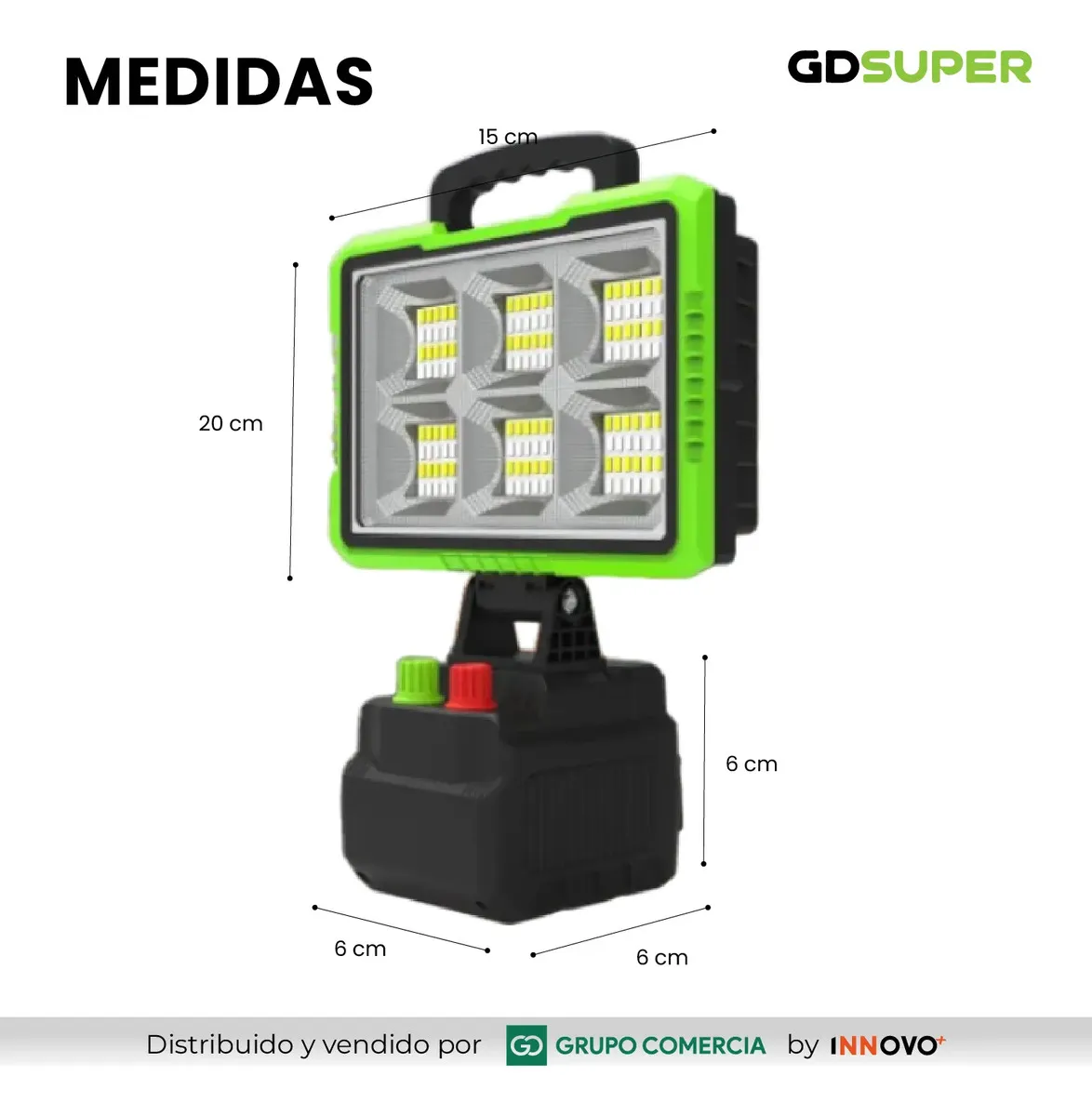 Presentamos el GDSUPER GD-2306B, la herramienta definitiva que redefine lo que significa «iluminación portátil». No es solo un proyector, es tu seguro de vida en la montaña, tu mejor aliado en el trabajo y tu respaldo total en apagones domésticos.