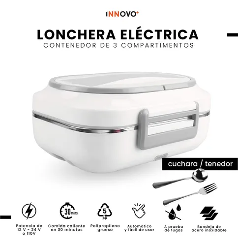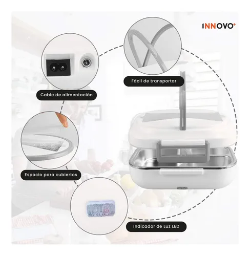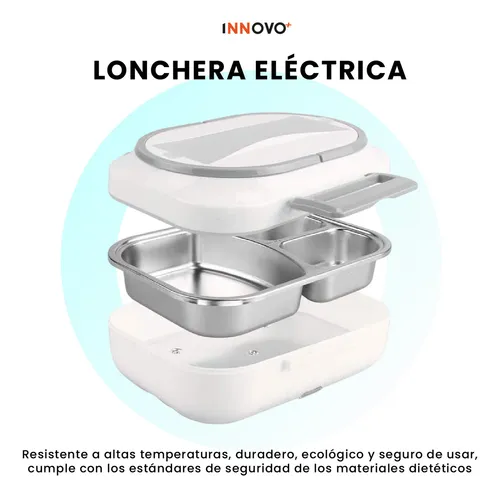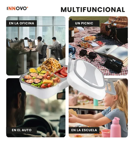 Ideal para oficina, viajes, trabajo en campo o carretera. Solo conecta y en pocos minutos tendrás tu almuerzo caliente y delicioso como en casa.