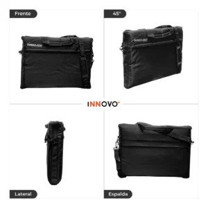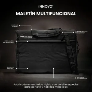 Mueve tu equipo con la seguridad que merece. El Maletín Multifuncional Innovo+ es la combinación perfecta de elegancia y resistencia. Fabricado con tela antifluido rígida, este maletín es tu mejor aliado contra la lluvia y los accidentes cotidianos, manteniendo tu laptop siempre seca y segura.