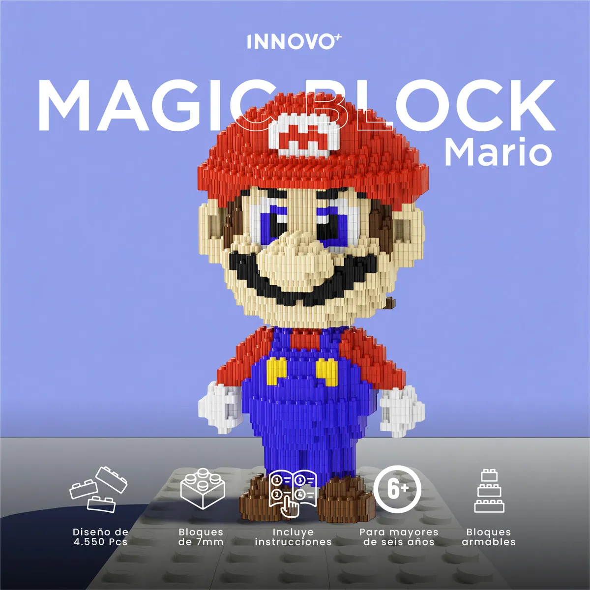 Fabricado en plástico ABS de alta resistencia, no tóxico, seguro y diseñado para durar. Una vez armado, Mario se convierte en una figura estable, firme y muy detallada gracias al sistema de microbloques.