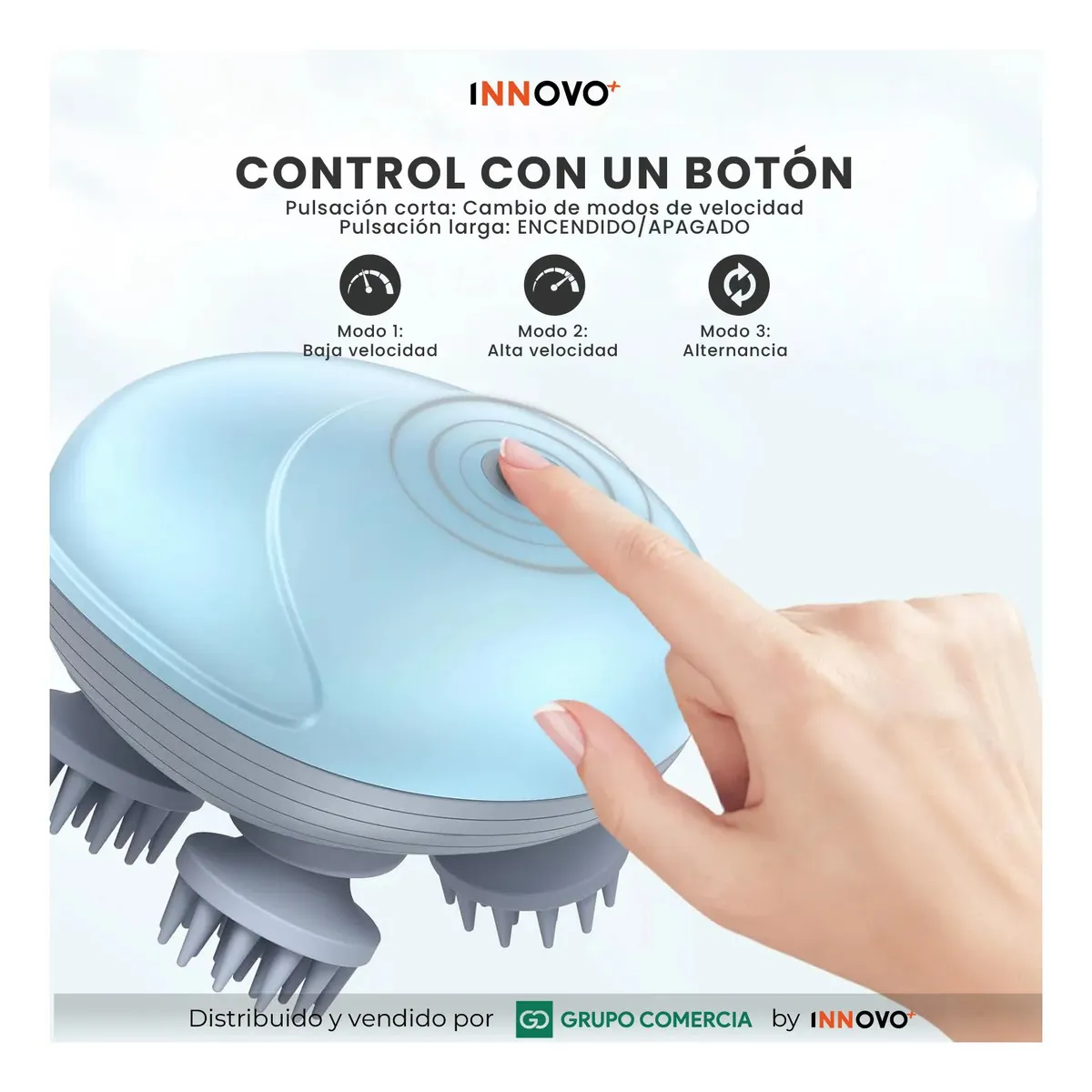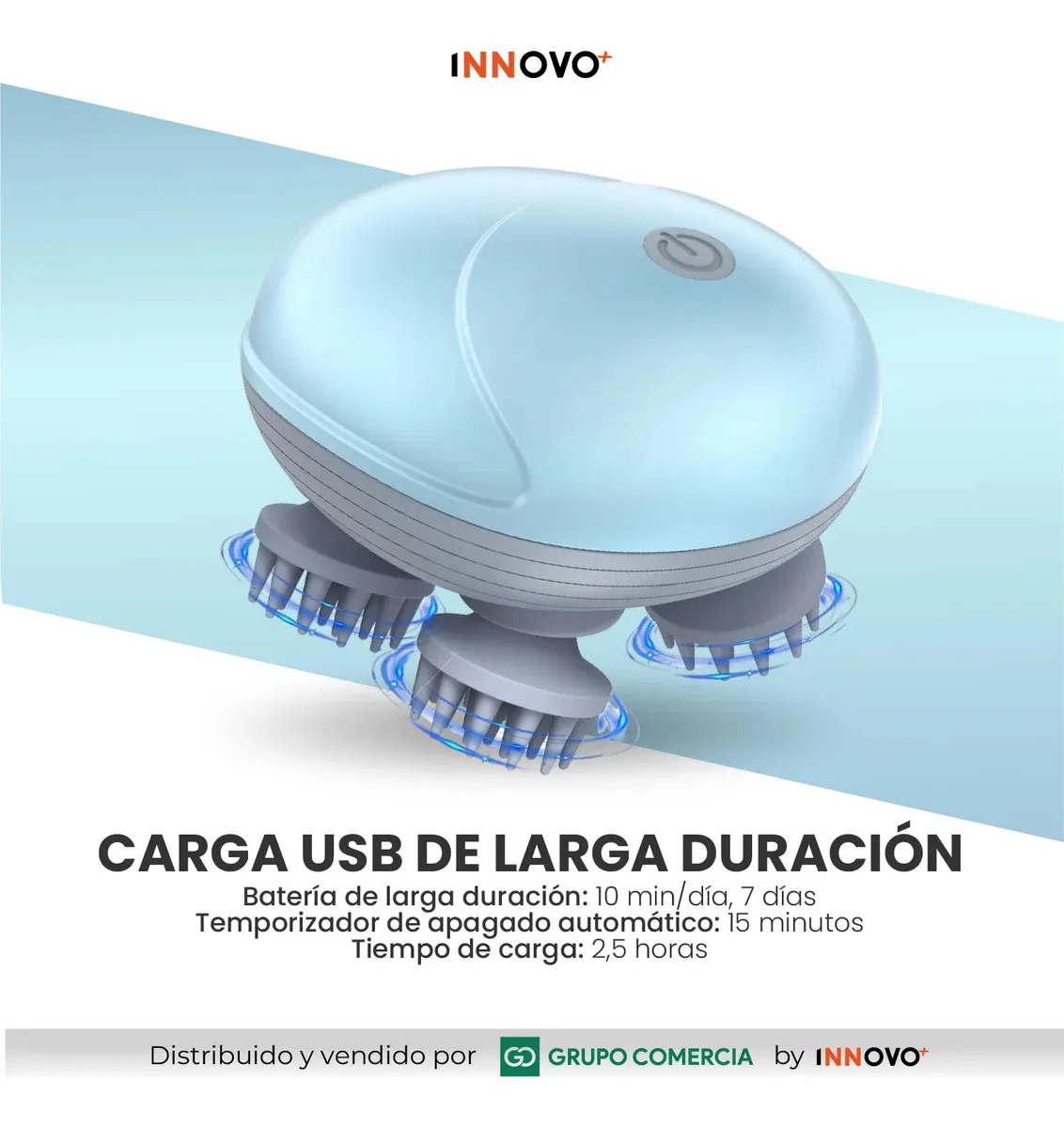 96 Puntos de Contacto Sensorial: Sus 4 cabezales de silicona suave cuentan con 96 nodos que estimulan la circulación sanguínea, promoviendo la salud capilar y un crecimiento más fuerte.