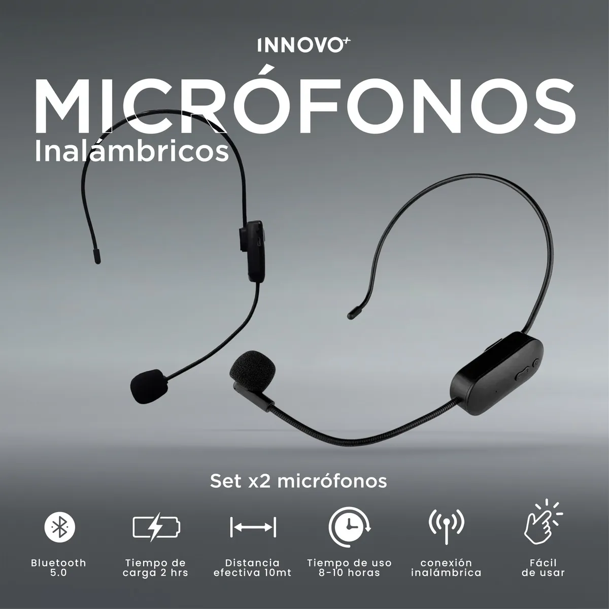 Potencia tu voz y lleva tu comunicación al siguiente nivel con el Set de Micrófonos Inalámbricos Profesionales Innovo+. Diseñados para profesores, coaches, creadores de contenido, conferencistas, guías turísticos, gimnasios y eventos en vivo.