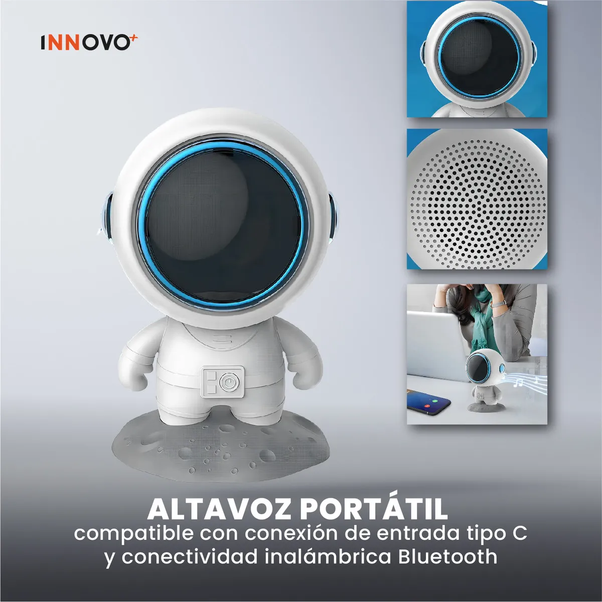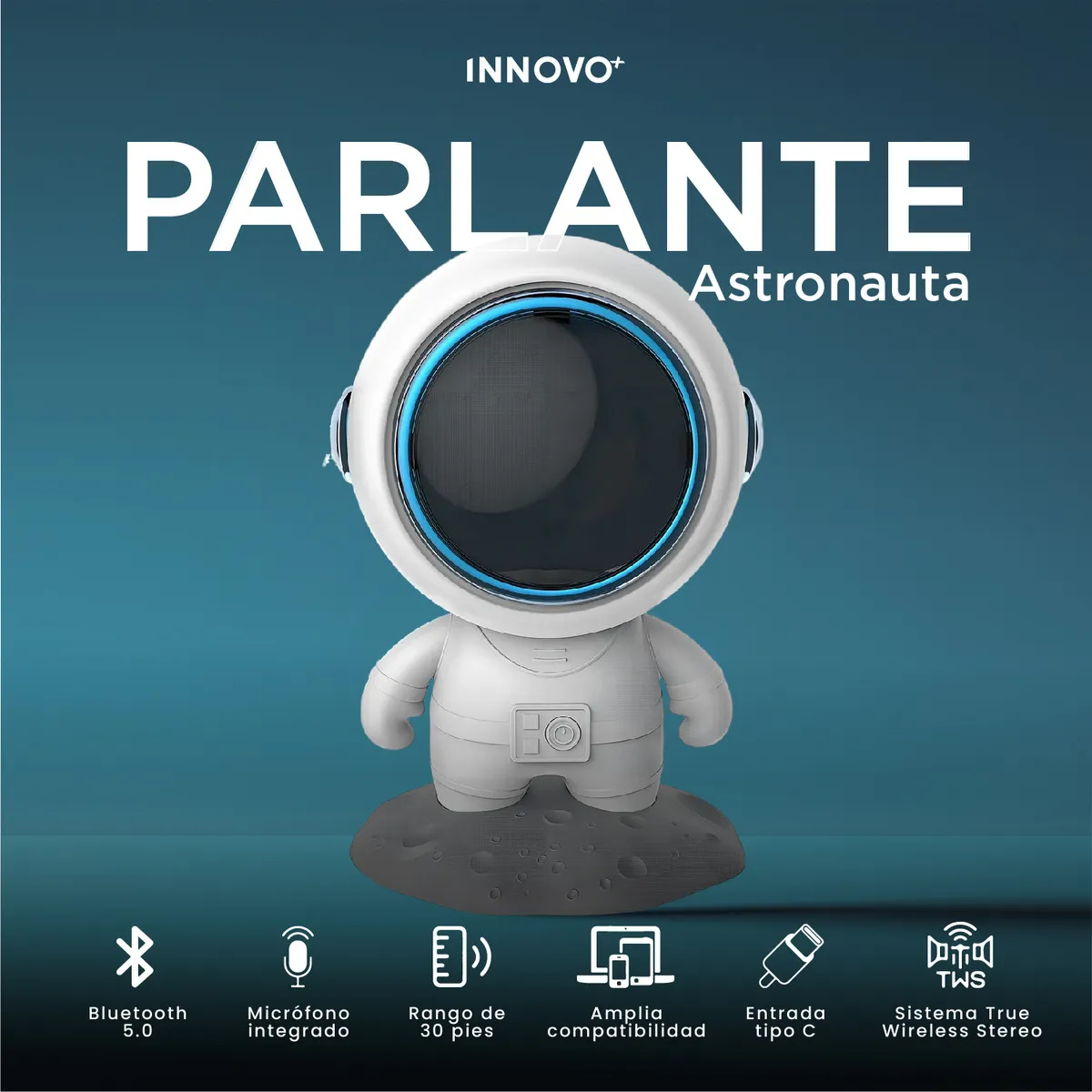 ¿Buscas algo más que un simple altavoz? El Parlante Astronauta Innovo+ no es solo un dispositivo de audio, es una pieza de diseño que transforma cualquier rincón en una estación espacial de puro sonido. Con su estética futurista «linda y genial», es el compañero perfecto para tu escritorio, tu mesita de noche o tus sesiones de meditación.