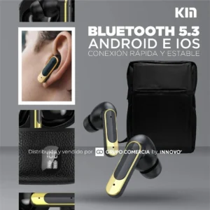 Experimenta la verdadera tecnología True Wireless Stereo (TWS) con un diseño elegante en negro y dorado.