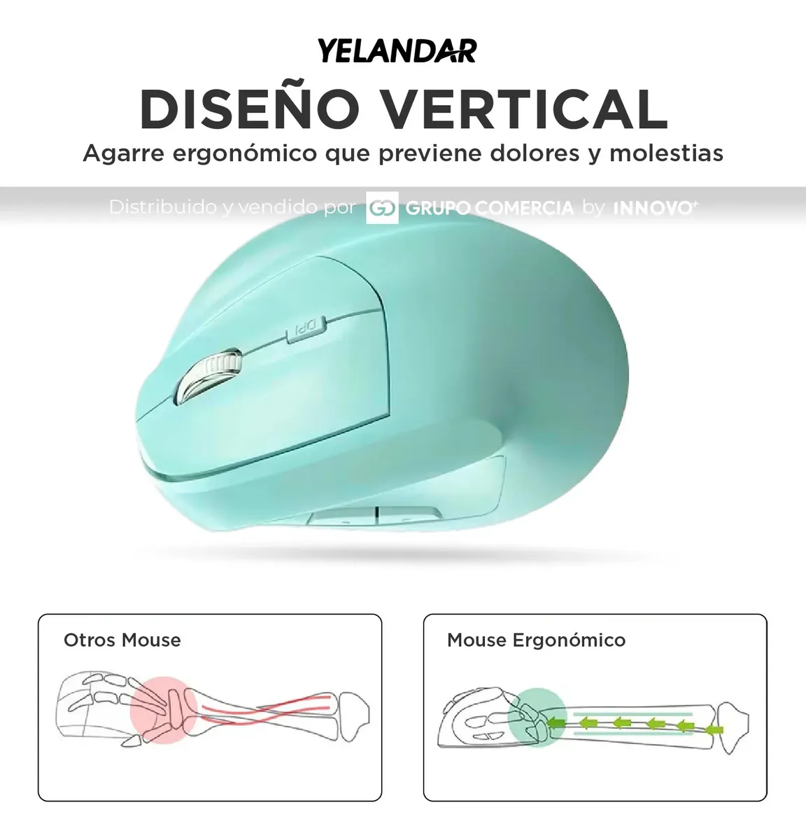 El diseño tradicional de los ratones obliga a tu antebrazo a girar de forma antinatural, causando fatiga y el temido síndrome del túnel carpiano. El Mouse Ergonómico Yelandar ha sido diseñado bajo el concepto de «apretón de manos natural», manteniendo tu brazo en una posición de descanso real mientras trabajas.