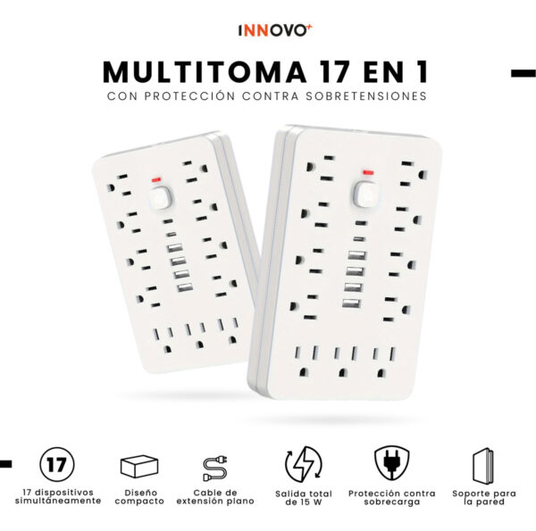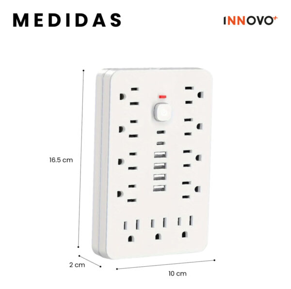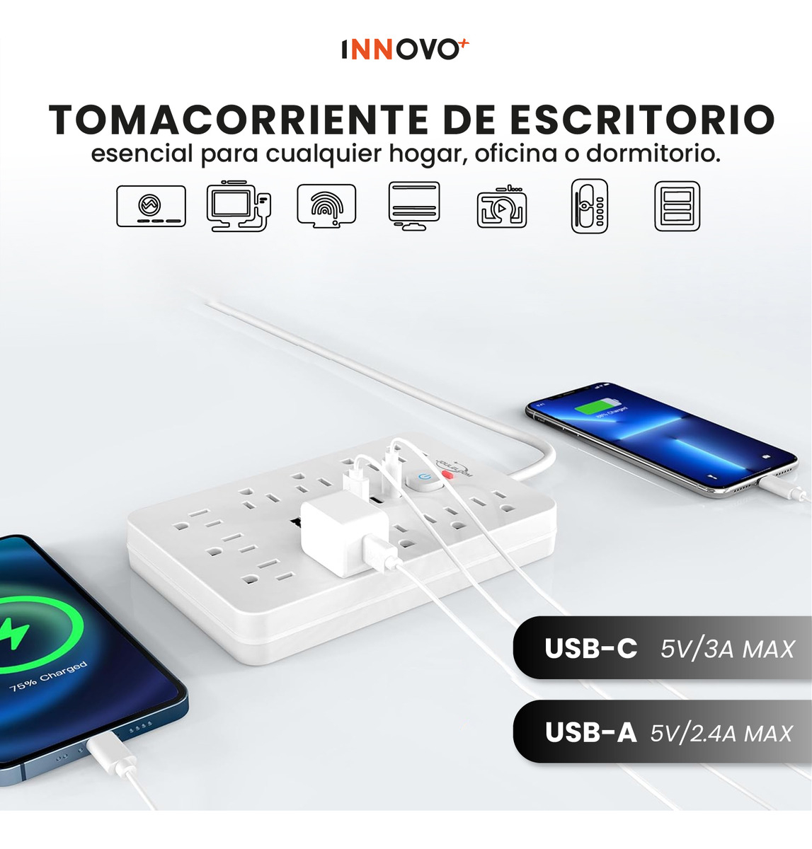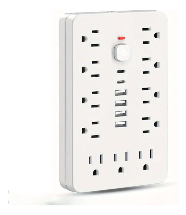 Multitoma 17 En 1 Regleta Eléctrica 11 Tomas 6 Usb Carga Rápida Usb-c Protección Sobrecarga Blanco