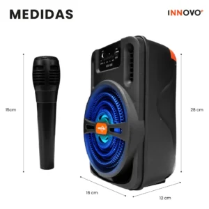 Incluye micrófono, ideal para presentaciones, karaoke, animaciones, clases, discursos o actividades de recreación.