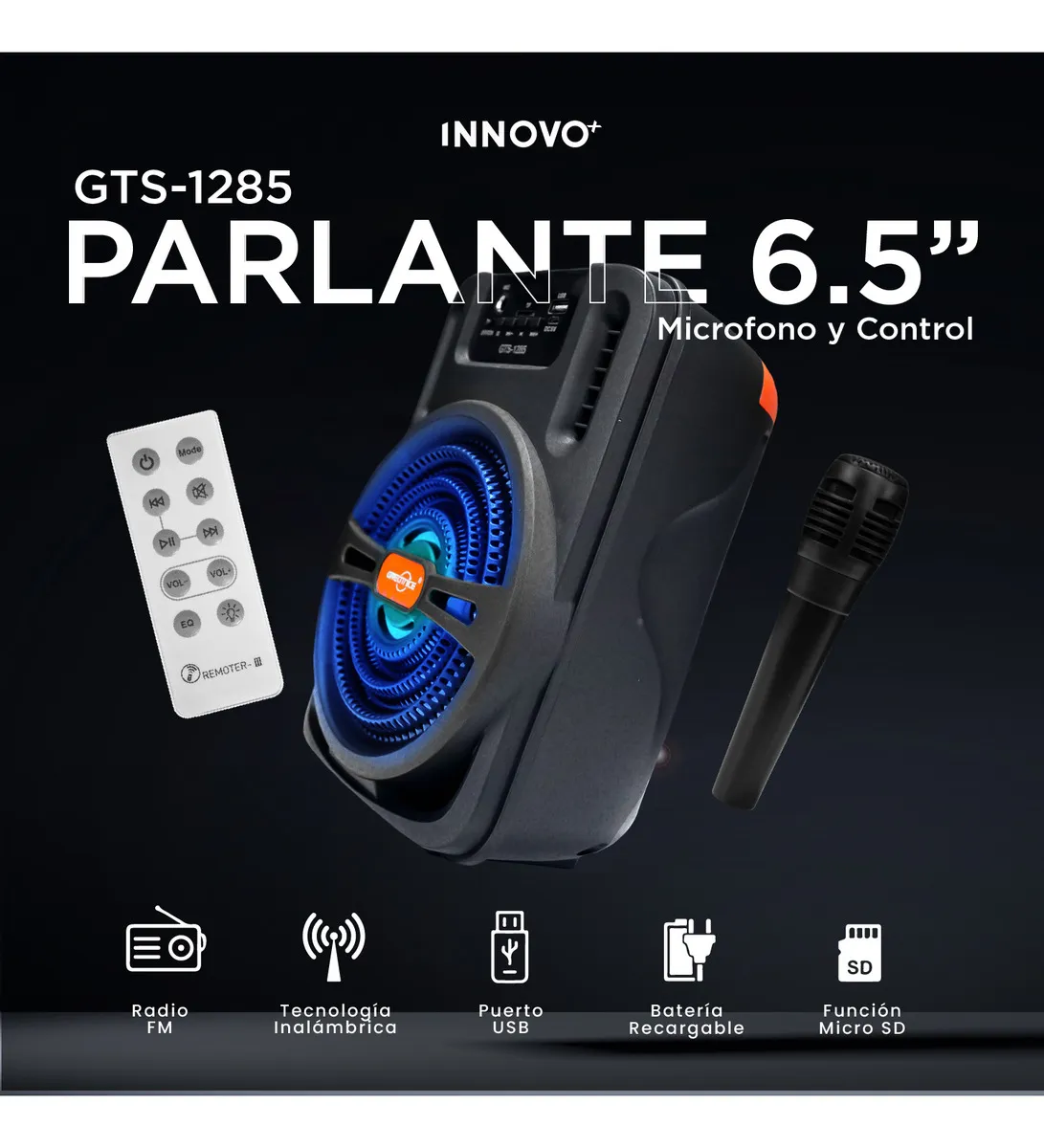El Parlante Bluetooth GTS-1285 de 6.5” está diseñado para quienes buscan potencia, calidad y portabilidad en un solo equipo. Perfecto para eventos, reuniones, picnics, actividades al aire libre, karaoke, fiestas en casa y trabajo.