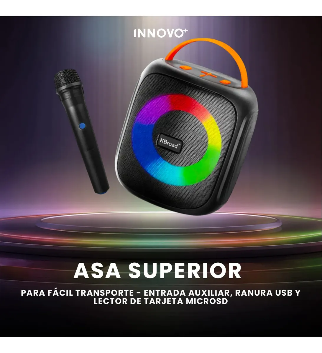 Este no es solo un parlante, es un sistema de entretenimiento completo diseñado para quienes aman la música y no se conforman con un sonido plano.