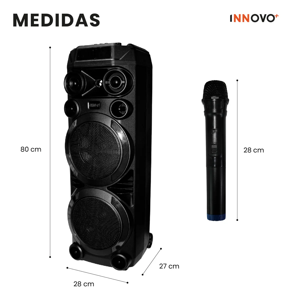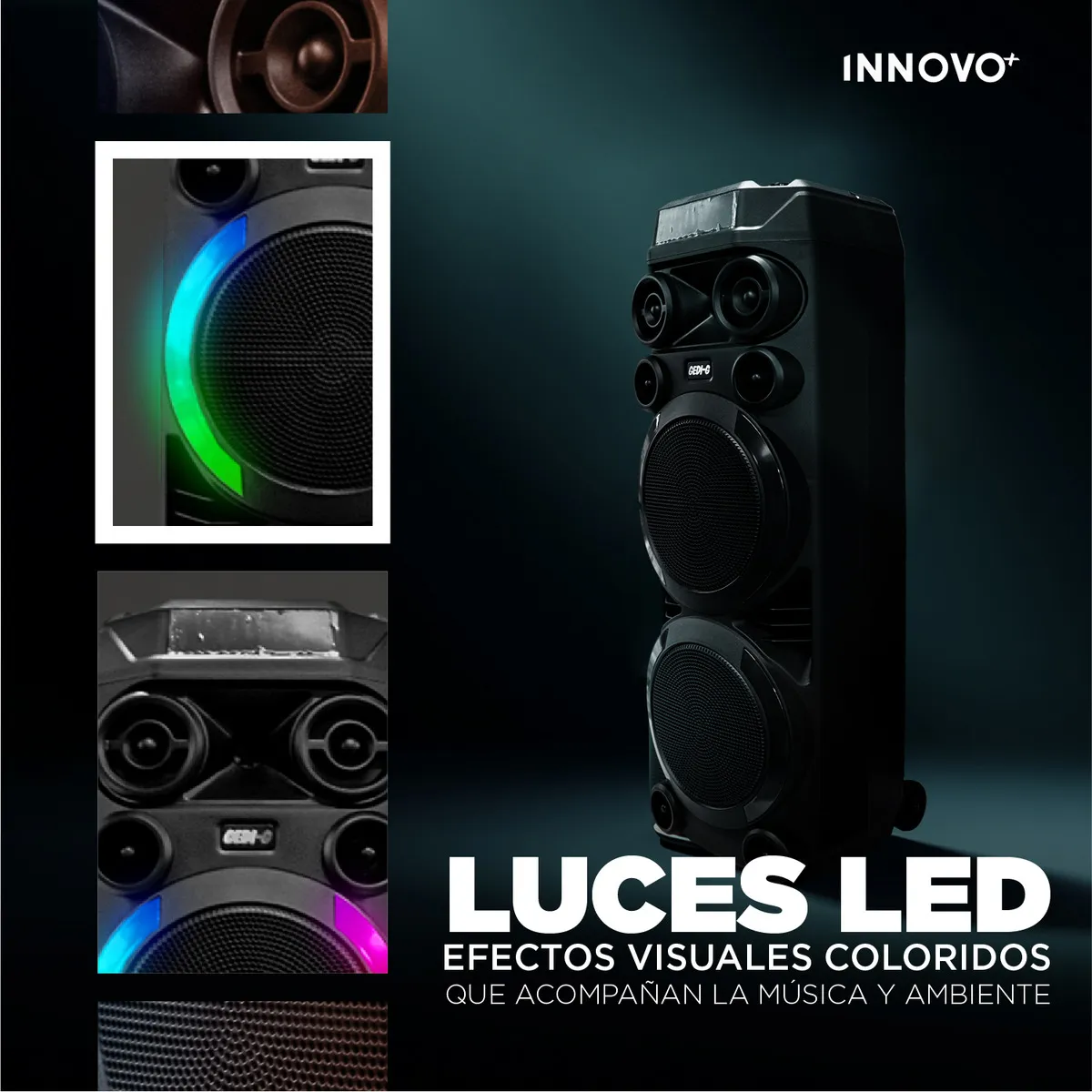 Equipado con 60W reales, woofer doble de 8 pulgadas, Bluetooth 5.3 de alta estabilidad y luces LED RGB, ofrece una experiencia completa: sonido profundo, graves marcados y ambiente visual impresionante.