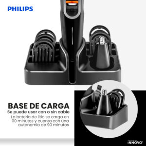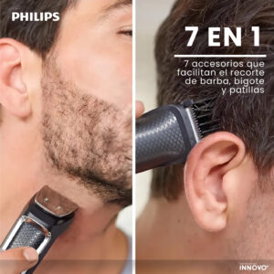 El Philips Multigroom 7-en-1 no es solo una recortadora; es tu barbero personal guardado en una base de carga de última generación. Diseñado para el hombre que valora la precisión y el tiempo, este sistema integra tecnología de punta para que definir tu barba, bigote o patillas sea una experiencia de lujo, no una tarea más.