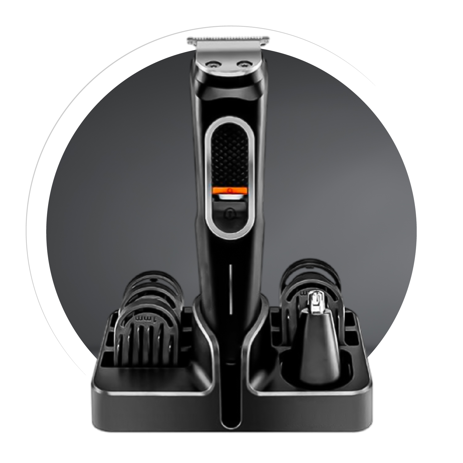 Orden y Estilo en tu Baño: Incluye una base de carga premium que organiza tus 7 accesorios, manteniendo tu espacio limpio y tu máquina siempre lista para la acción.