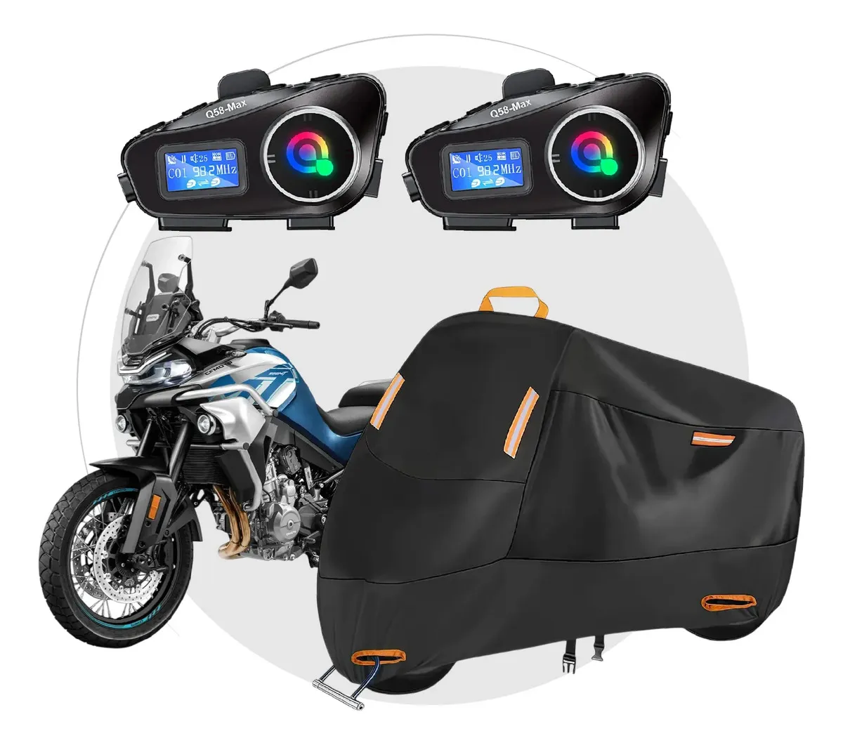 ¿Eres de los que no se detiene ante nada? Presentamos el Kit Definitivo para Moteros de Élite. Hemos combinado la protección más robusta para tu máquina con la tecnología de comunicación más avanzada del mercado. No es solo un accesorio, es la mejora que tu estilo de vida necesita.