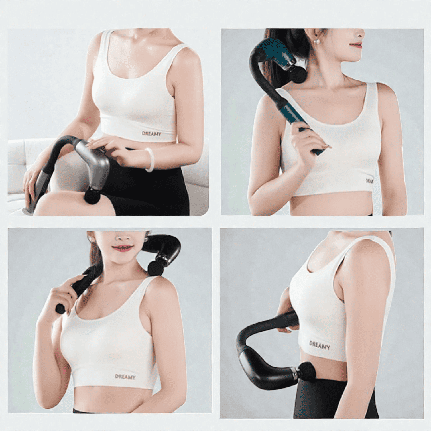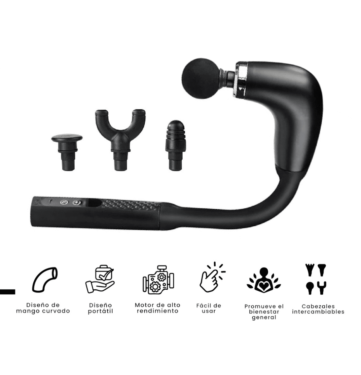 Adáptala fácilmente a diferentes zonas del cuerpo: cuello, espalda, piernas, brazos y más. Cada cabezal tiene una función específica para que el masaje sea efectivo y personalizado. -