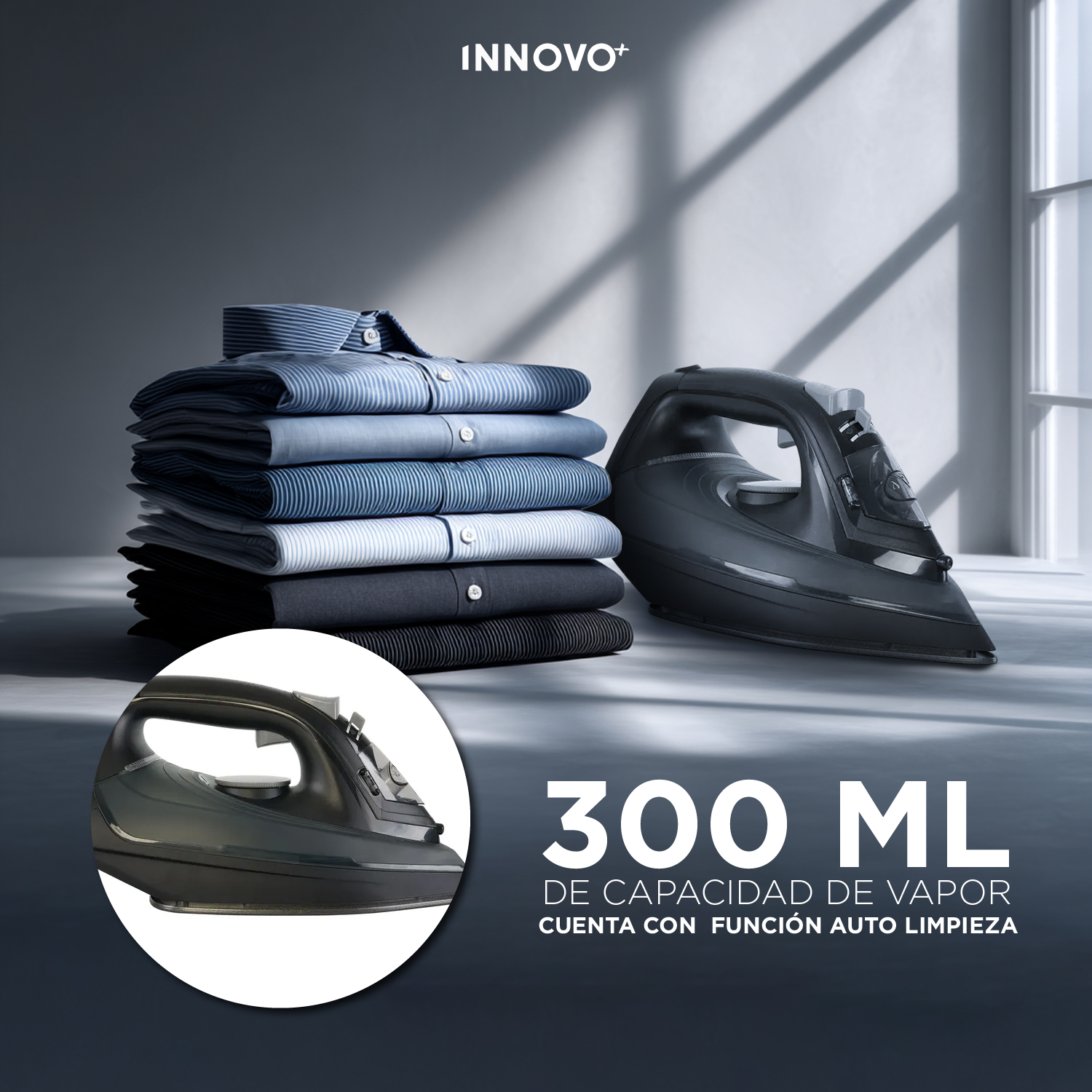 🧴 Tanque de 300 ml para planchar más prendas sin recargar