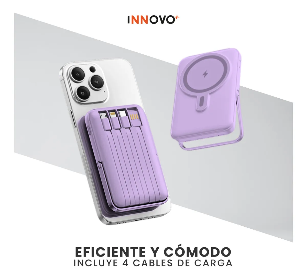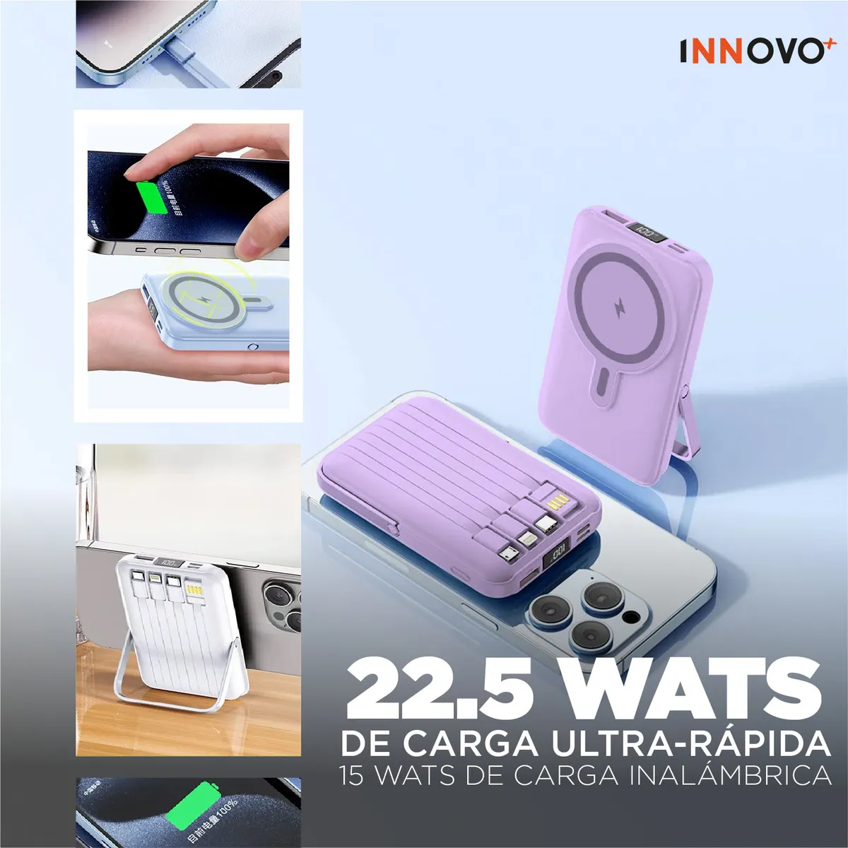 La PowerBank Magnética Innovo+ de 22.5W es la solución definitiva para cargar tus dispositivos en cualquier momento, sin enredos y sin accesorios adicionales.