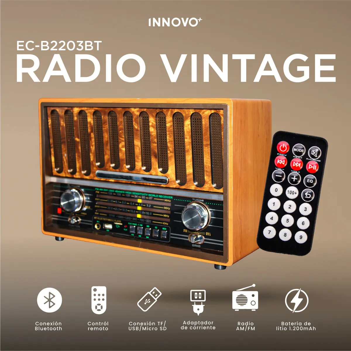 ¿Buscas una pieza que no solo suene increíble, sino que también transforme la decoración de tu hogar? La Radio Vintage EC-B2203BT es la mezcla perfecta entre el encanto retro de los años 50 y las funciones modernas que necesitas hoy.
