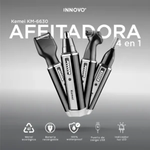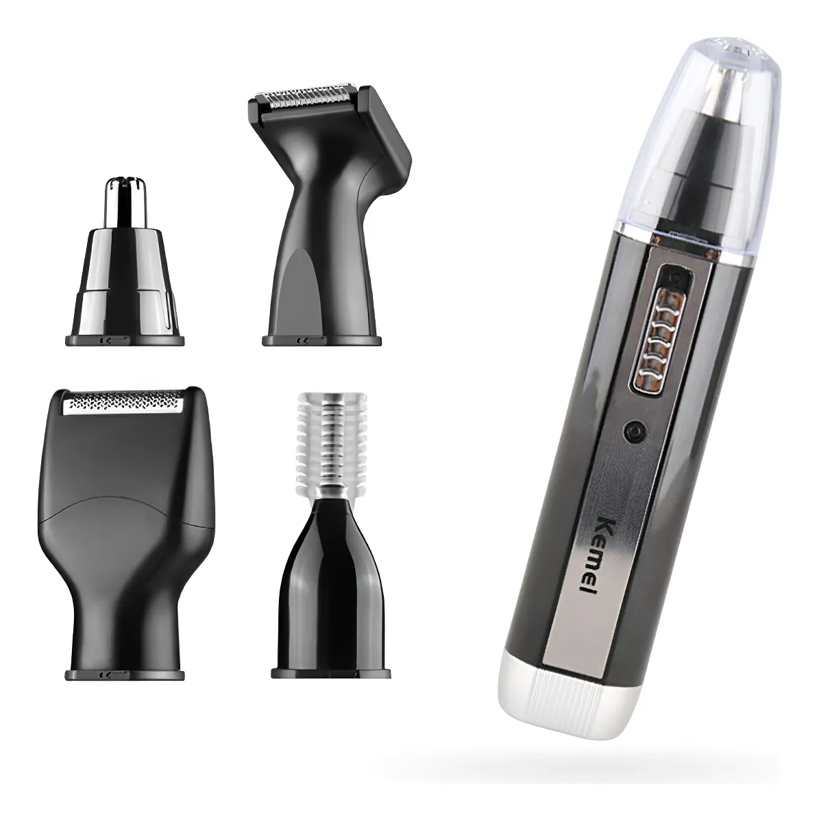Mantén tu imagen impecable con este kit recortador 4 en 1 Kemei, diseñado para eliminar vello no deseado de forma rápida, segura y sin irritación. Perfecto para nariz, orejas, cejas y retoque de barba o bigote. Ideal para uso diario y viajes gracias a su diseño compacto y batería recargable. Acabado premium, cuchillas afiladas e hipoalergénicas, y cabezales intercambiables para máxima precisión y comodidad.