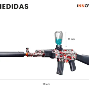 Lleva la acción de los videojuegos a la vida real con el Rifle AK-47 de Hidrogel Innovo+, la ametralladora de gel más buscada del momento. Su diseño robusto, tamaño realista de 90 cm de largo y su disparo automático por ráfagas lo convierten en el juguete perfecto para niños, jóvenes y adultos.