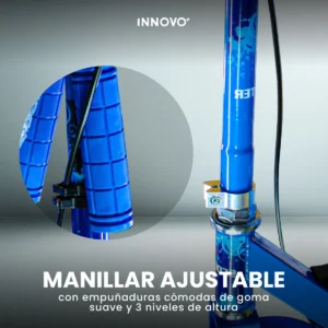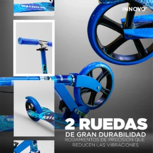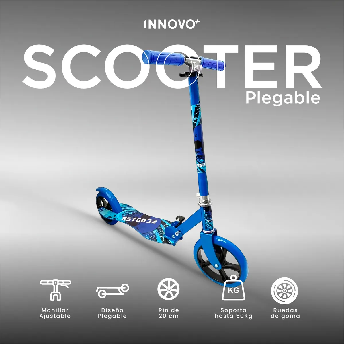 El Scooter Plegable Innovo+ está diseñado para brindar una experiencia estable, suave y cómoda gracias a su estructura resistente, ruedas de gran tamaño y manillar ajustable. Ideal para niños que aman jugar al aire libre, mejorar su equilibrio y disfrutar horas de entretenimiento.