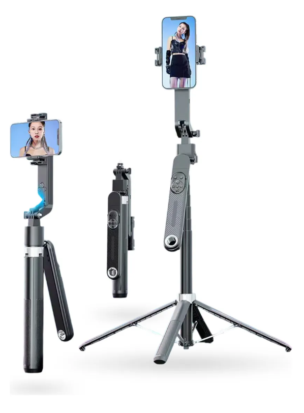 Versatilidad 3 en 1: Úsalo como Selfie Stick para tus fotos, como Trípode estable para videollamadas o tutoriales, y como Gimbal de mano para tomas en movimiento.